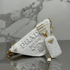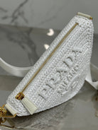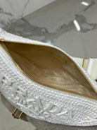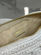CROCHET TRIANGLE BAG 26 IN WHITE RAFFIA GOLD HARDWARE