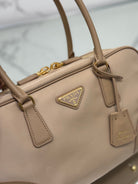 LARGE TOP HANDLE BAG 35 IN DRIED MOSS NYLON AND CALFSKIN TRIM