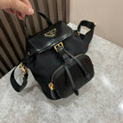 MINI BACKPACK 18 IN BLACK RE-NYLON AND GLOSSY CALFSKIN GOLD HARDWARE