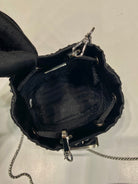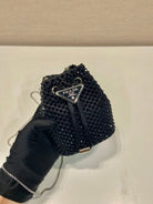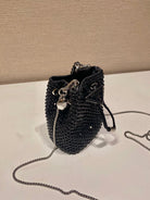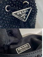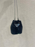 MINI BUCKET BAG 12 IN BLACK NYLON FABRIC EMBELLISHED FULL CRYSTALS