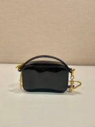 MINI HAND BAG 11 WITH GOLD STRAP IN BLACK PATENT CALFSKIN