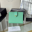 Pra 1MV204 Small Wallet Light Green Saffiano & Smooth Leather