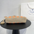 PRA HOBO BAG 23 IN BEIGE MIX ORANGE RAFFIA WITH WHITE LOGO GOLD HARDWARE
