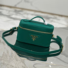 VANITY CASE 18 IN EMERALD GREEN GRAINED CALFSKIN GOLD HARDWARE