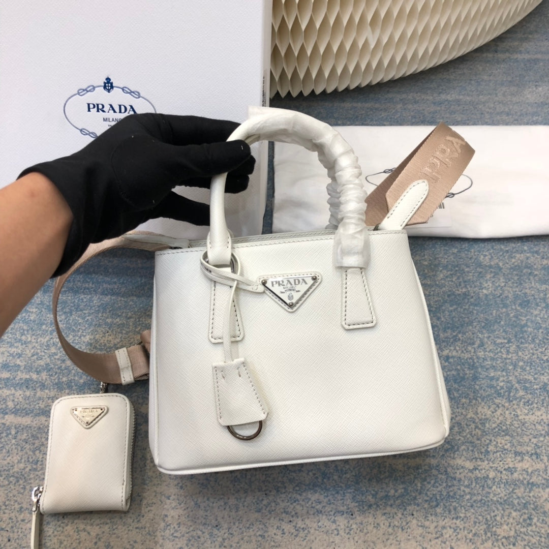 PRA GALLERIA 28 BAG IN WHITE SAFFIANO LEATHER