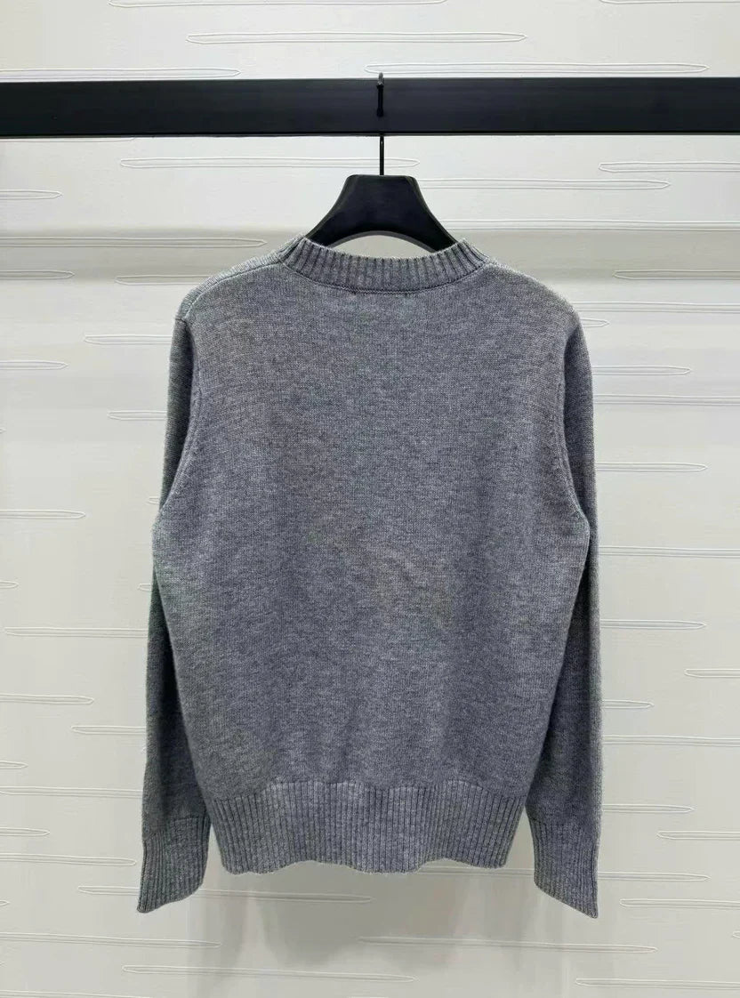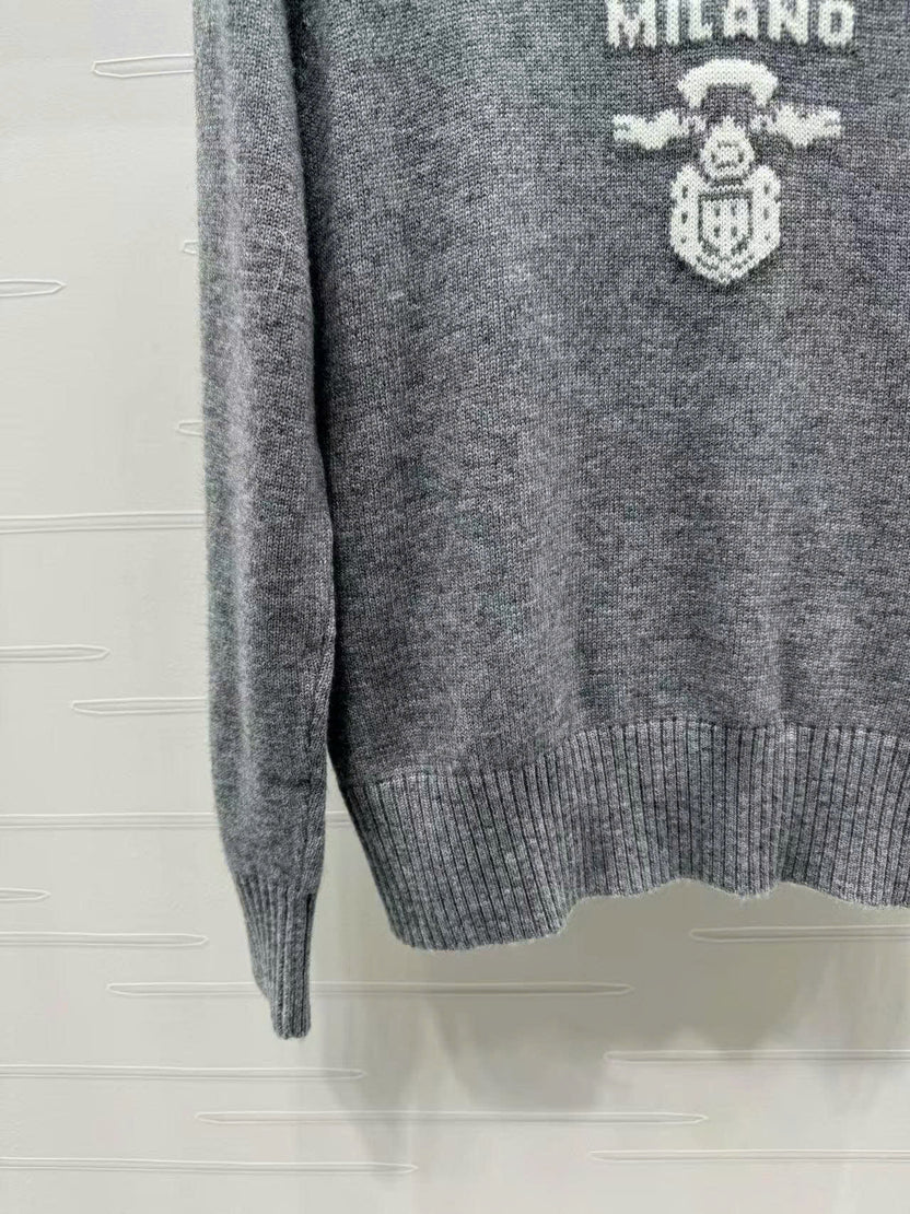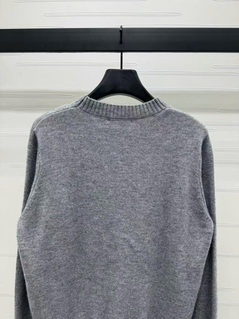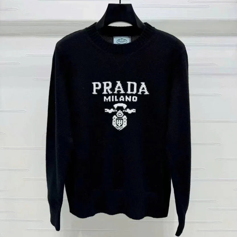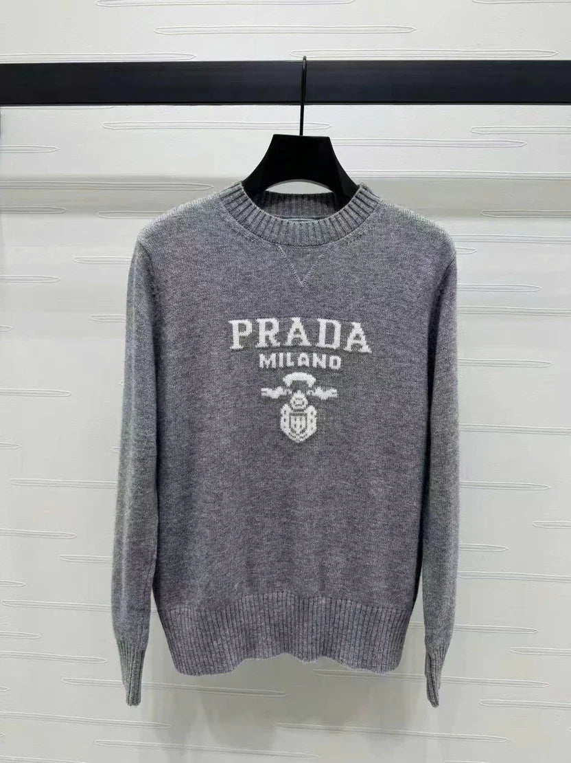 Prad Logo Crew-Neck Sweater in Natural Wool