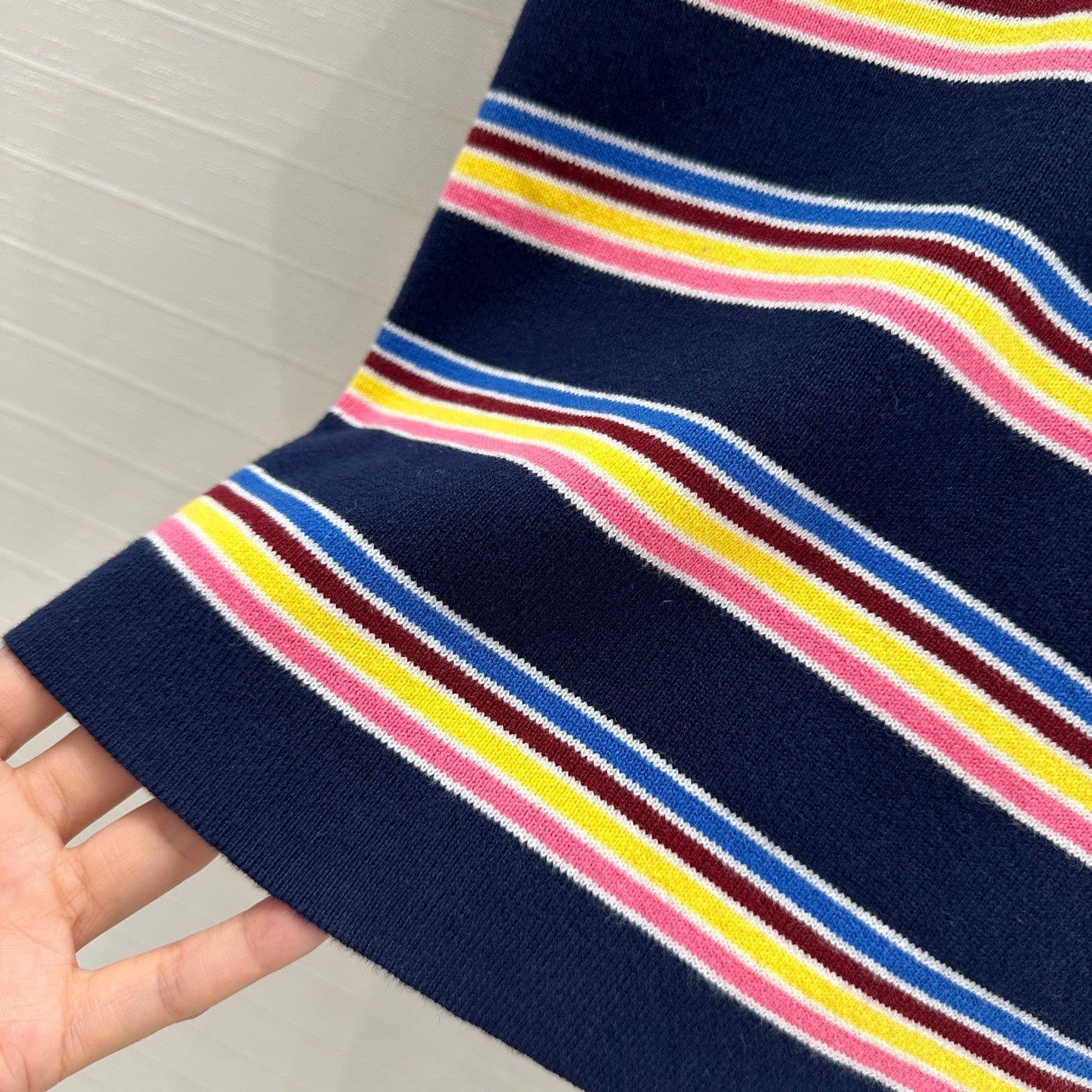 Prada 2025 Striped T-shirt Navy Blue mix colors Cotton