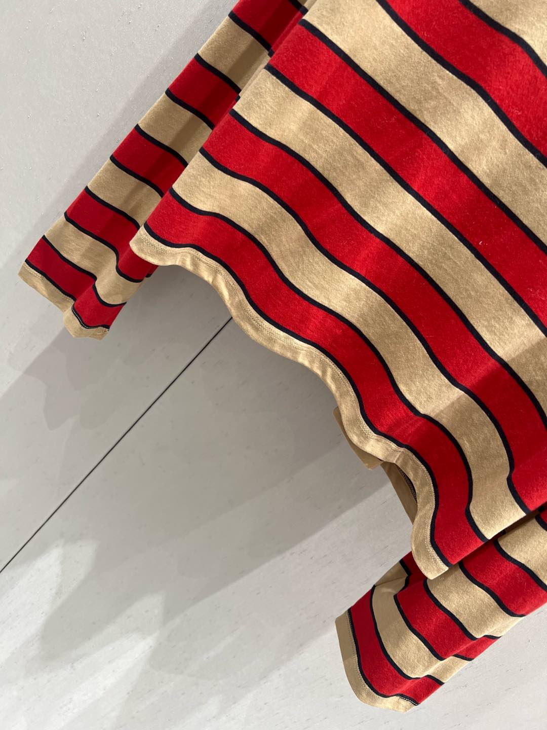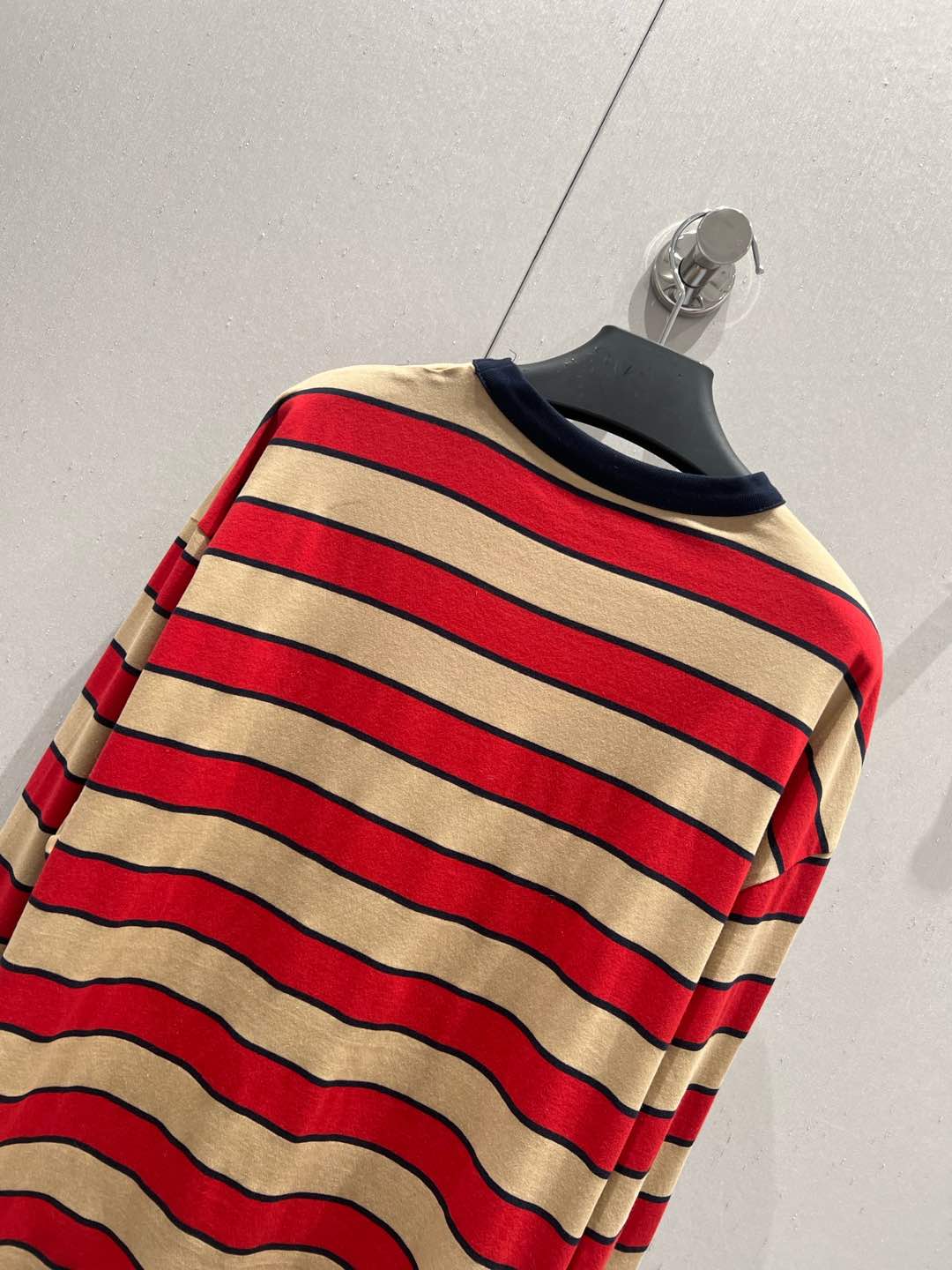 Prada 25 Striped Long-sleeved T-shirt Red mix Beige Cotton 209619