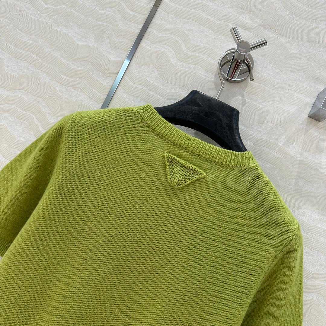 Prada Short Sleeves T-shirt Green Wool Cashmere