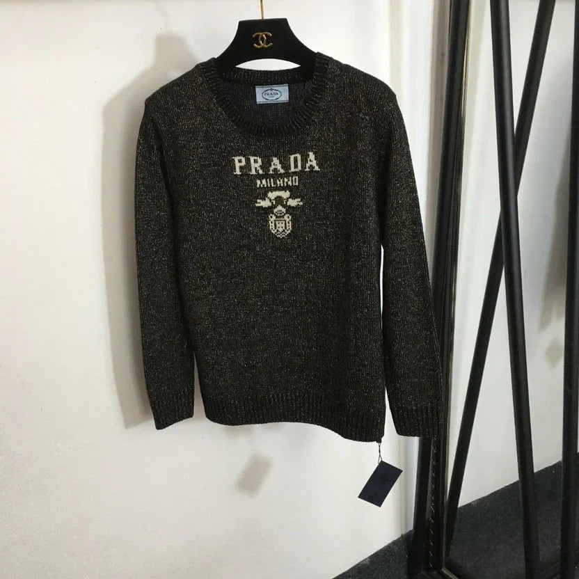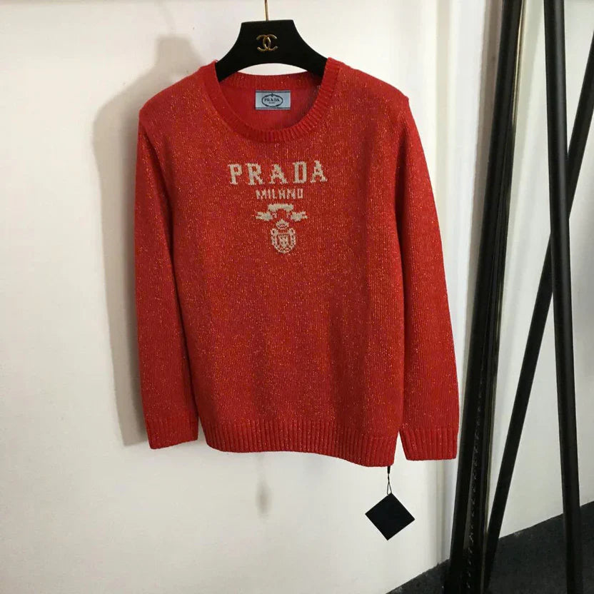 Prad Logo Crew-Neck Sweater in Bright Silk Blend Wool