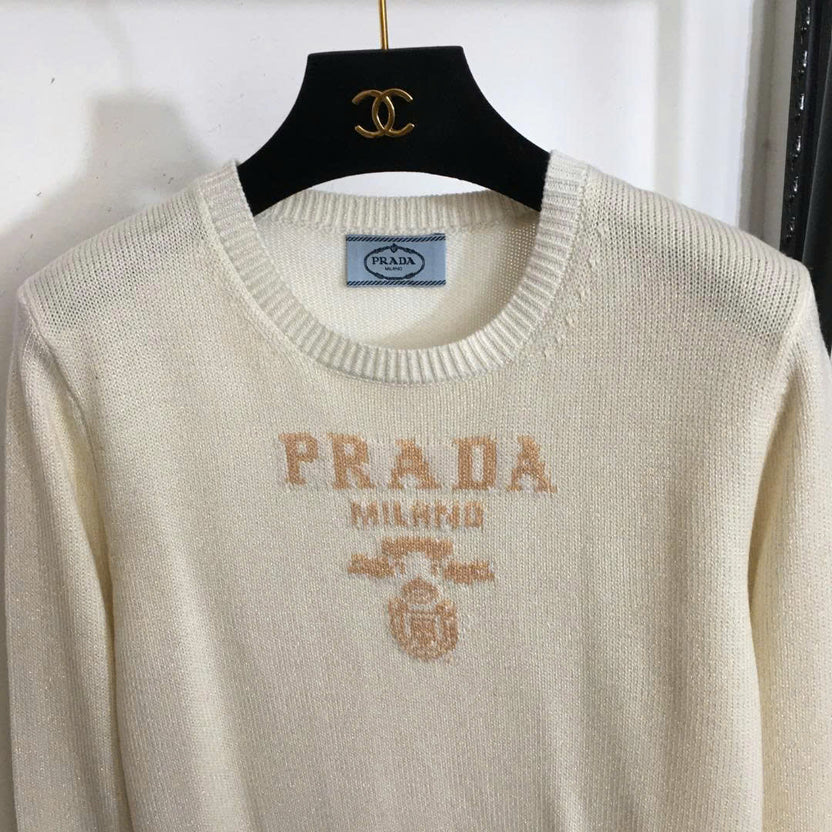 Prad Logo Crew-Neck Sweater in Natural Wool
