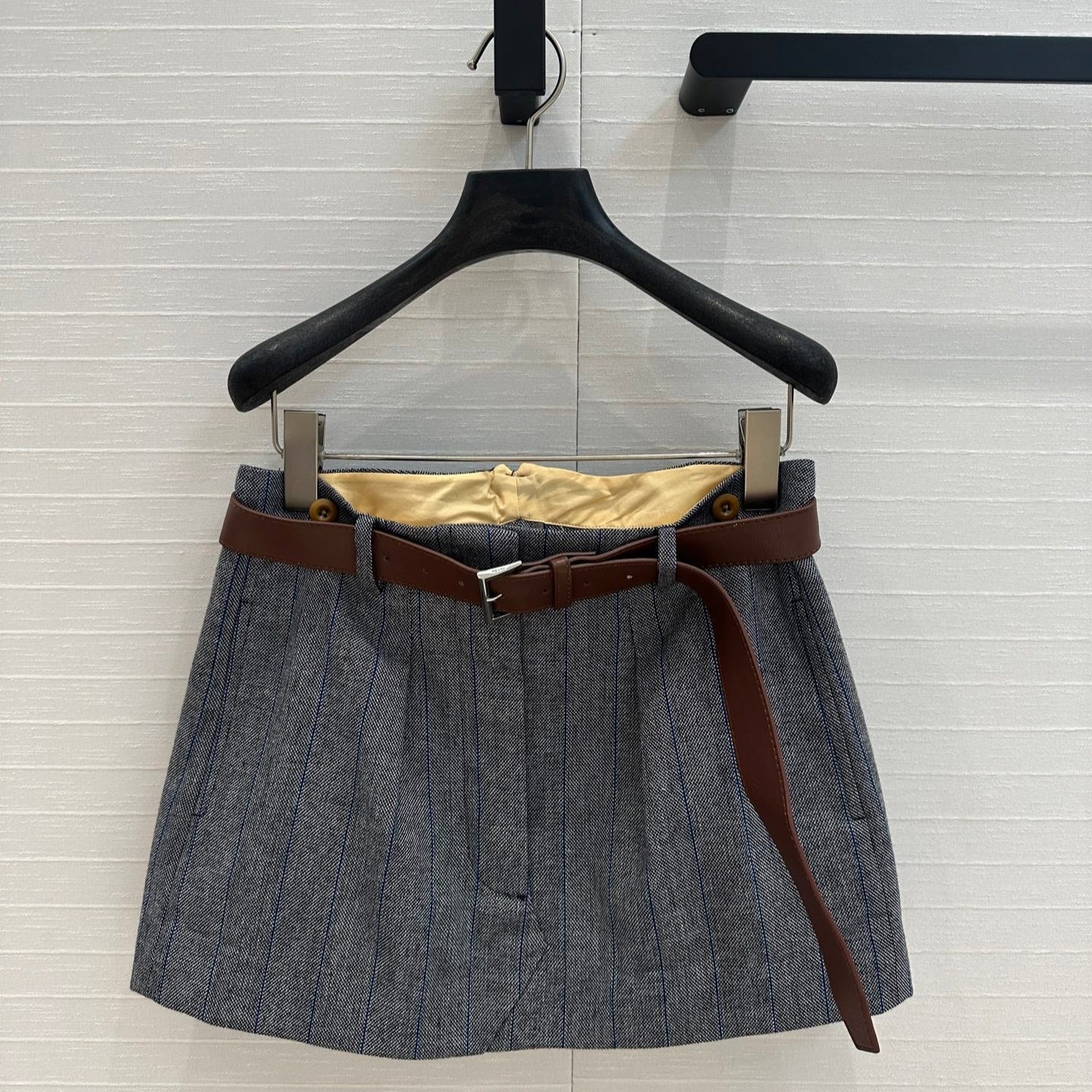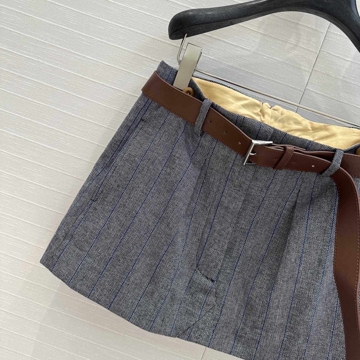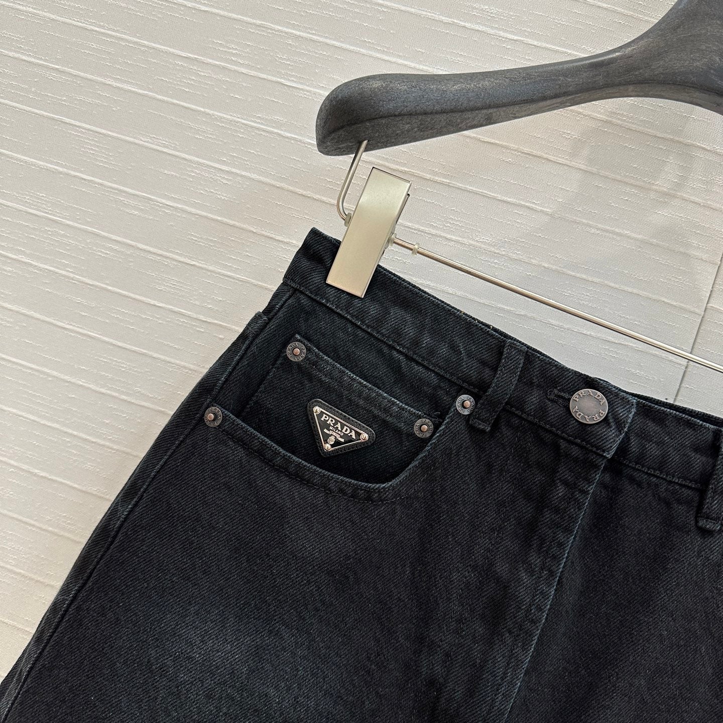 Prada 25 Leather Strap and Webbing Stitching Trousers Wool