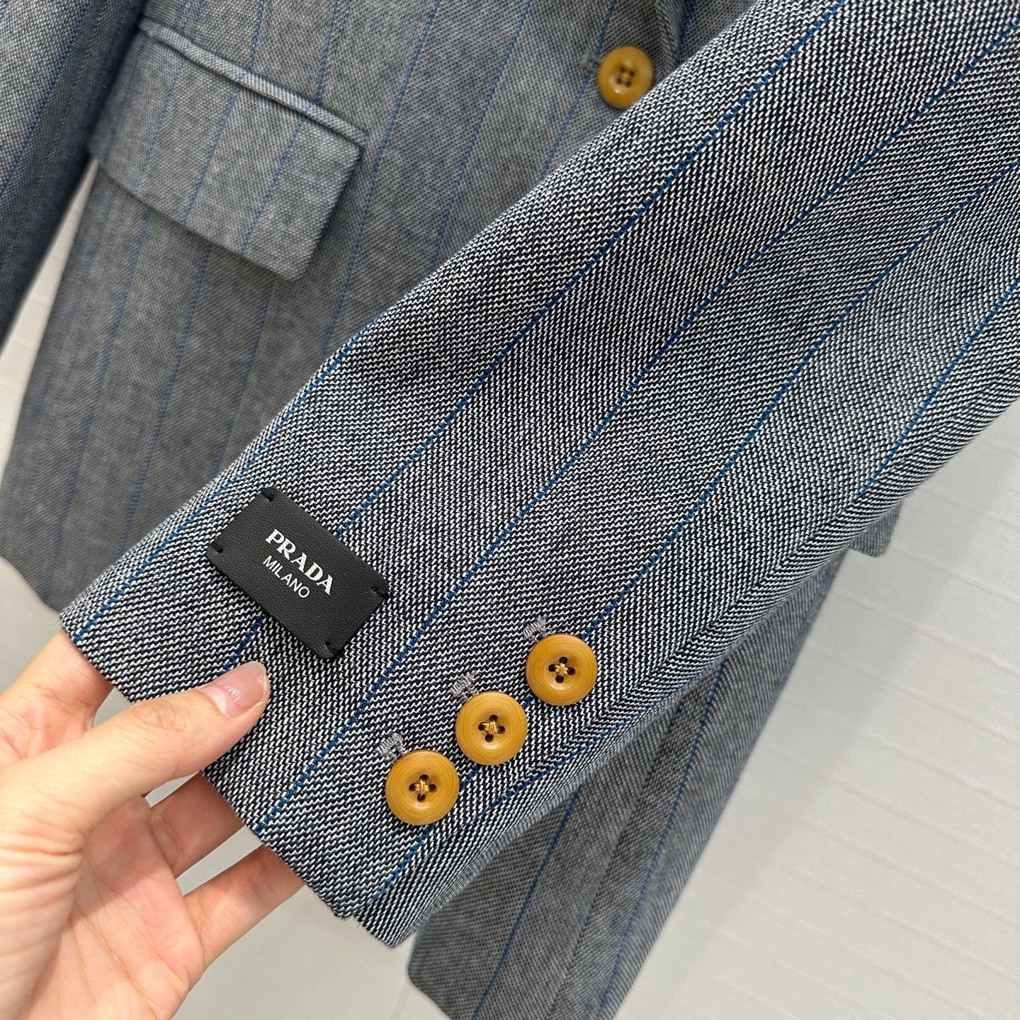 Prada 25 Striped Vest Suit Gray Wool Polyester