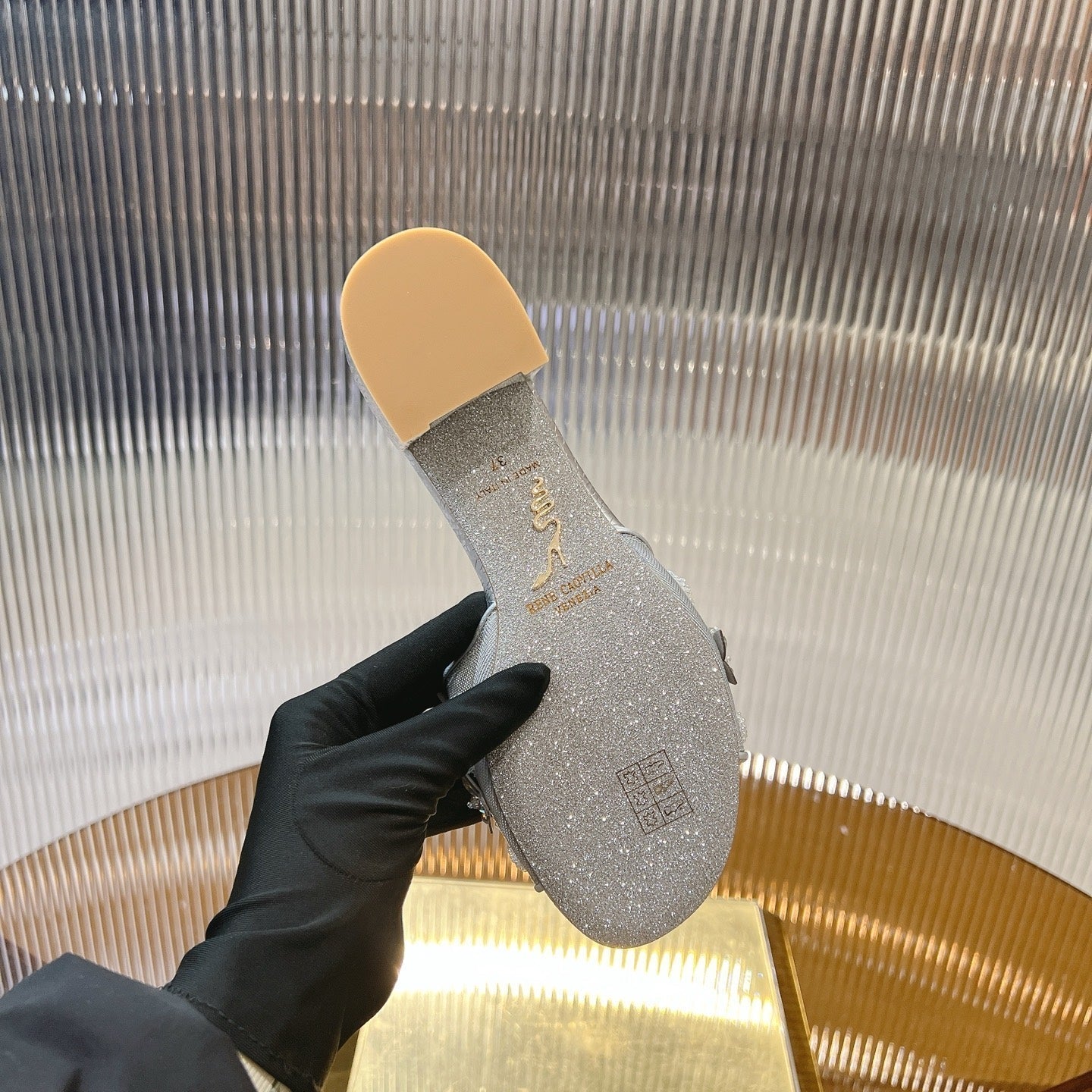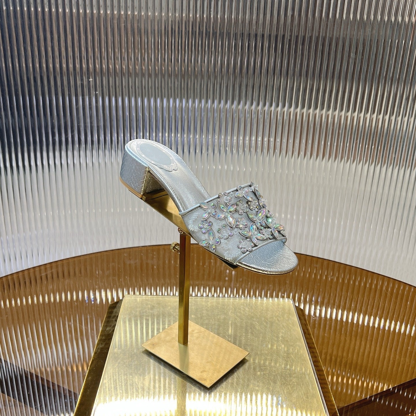 RC 25 Butterfly Flower Rhinestone Satin Sandals Silver Sheepskin 242919