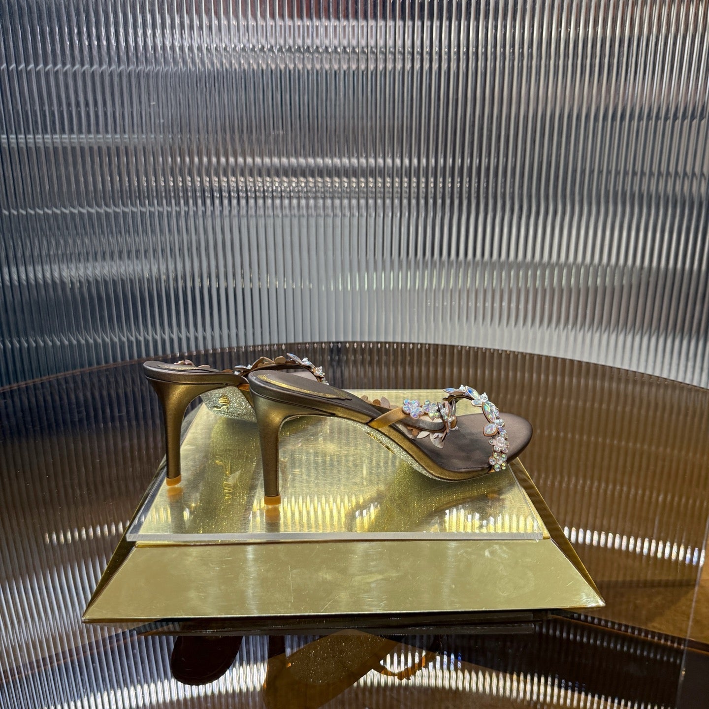 RC 25C Butterfly Flower Slippers Brown Sheepskin Rhinestones 310658