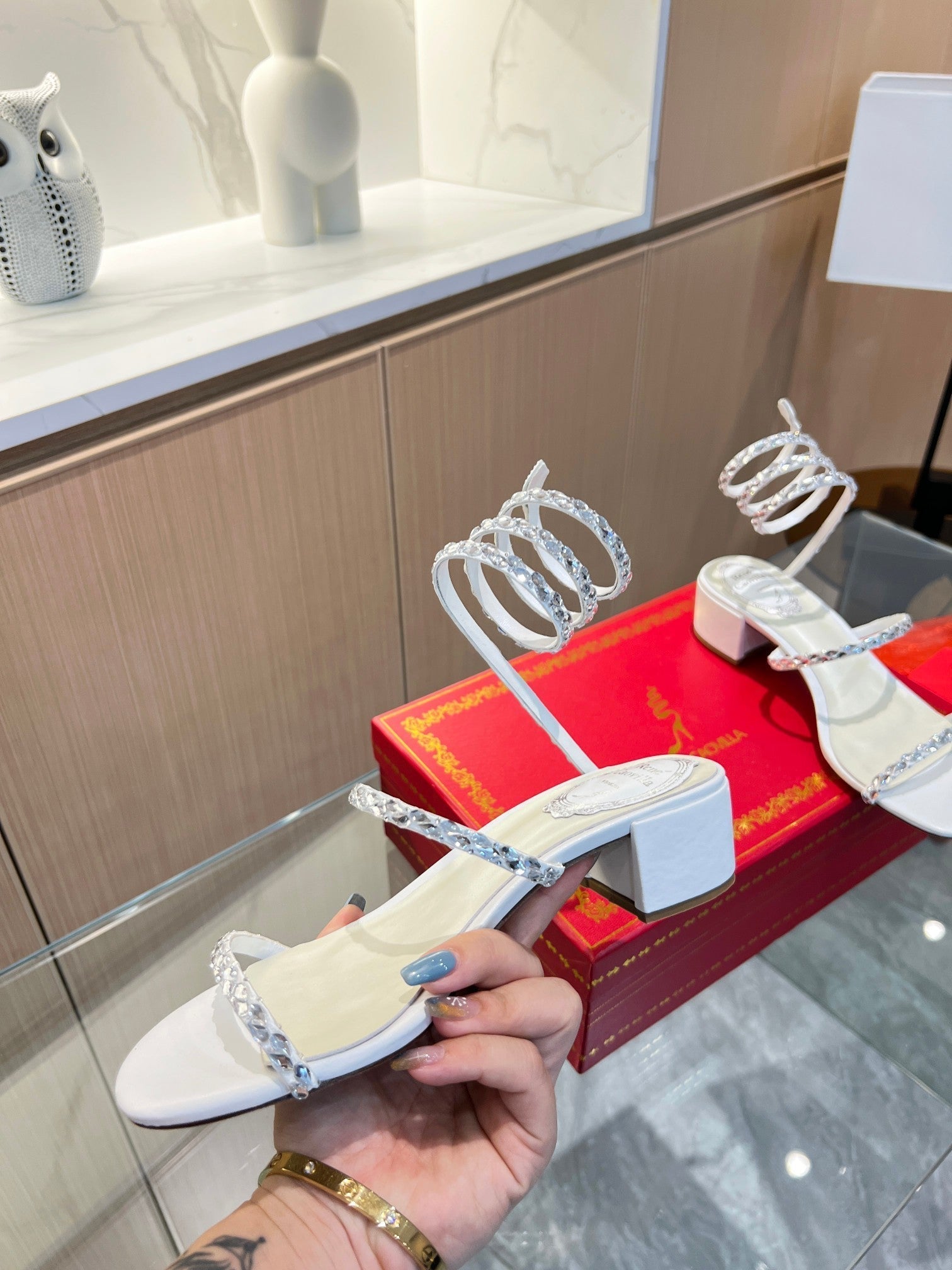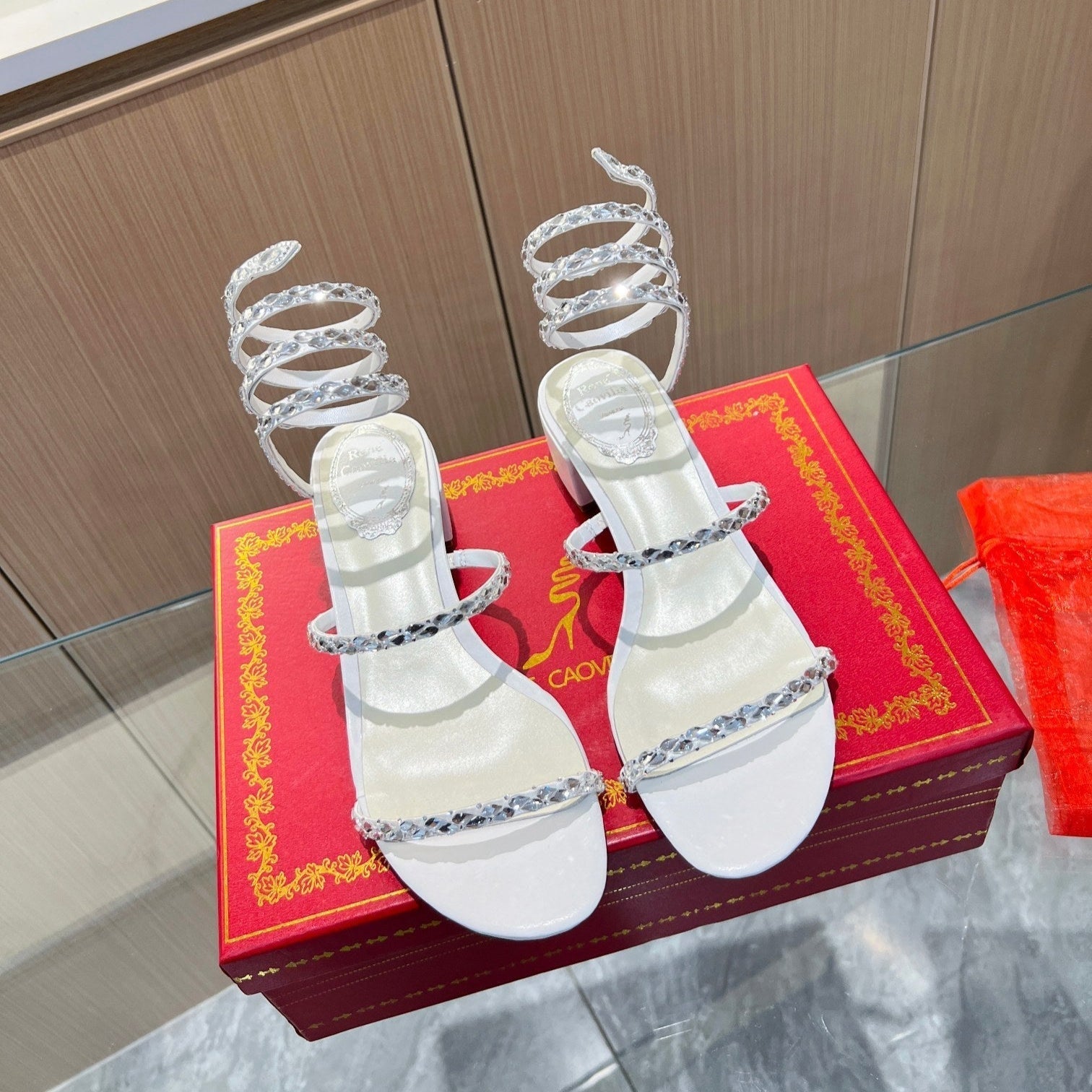 RC Diamond Sandals White Silk Creole Glass Diamond 341982