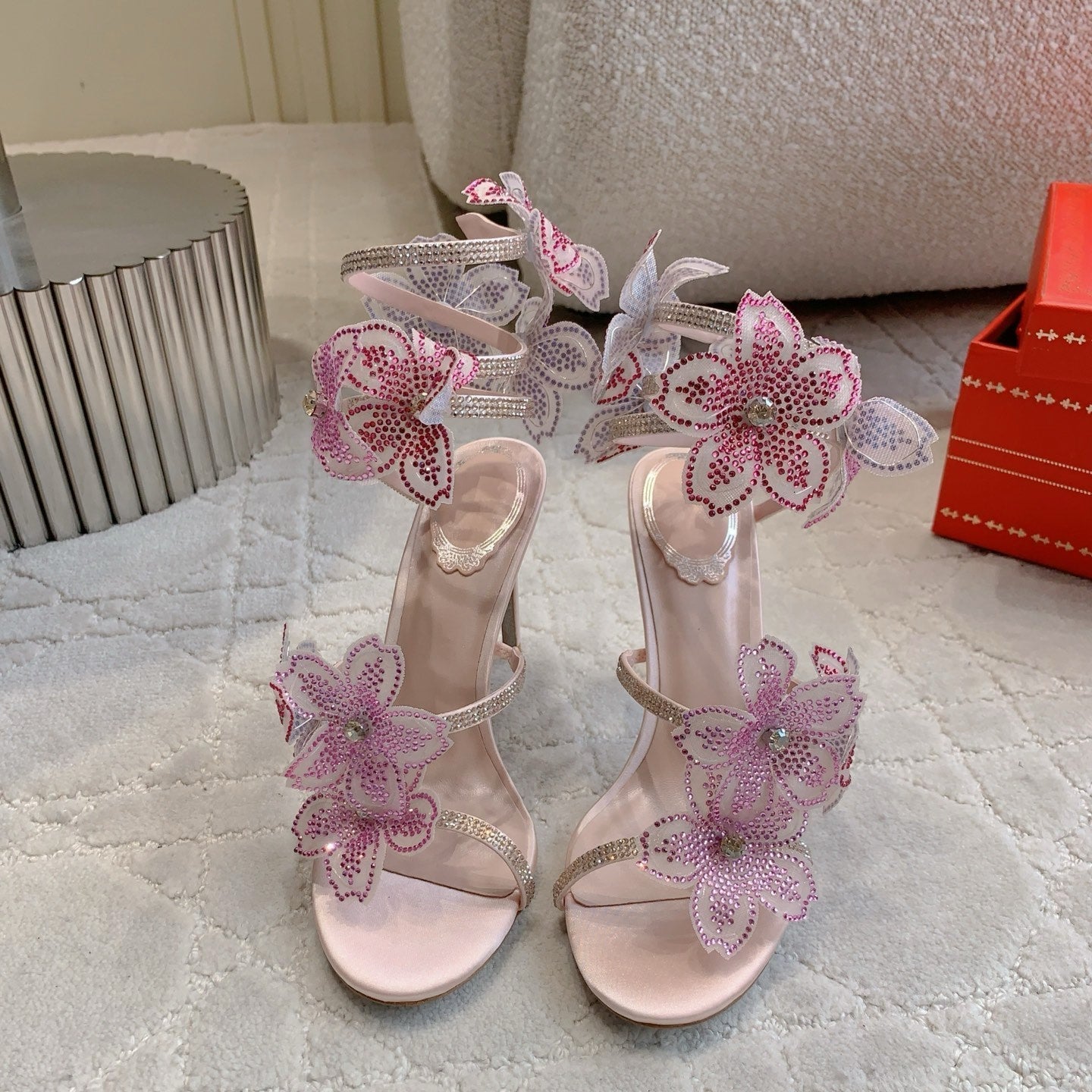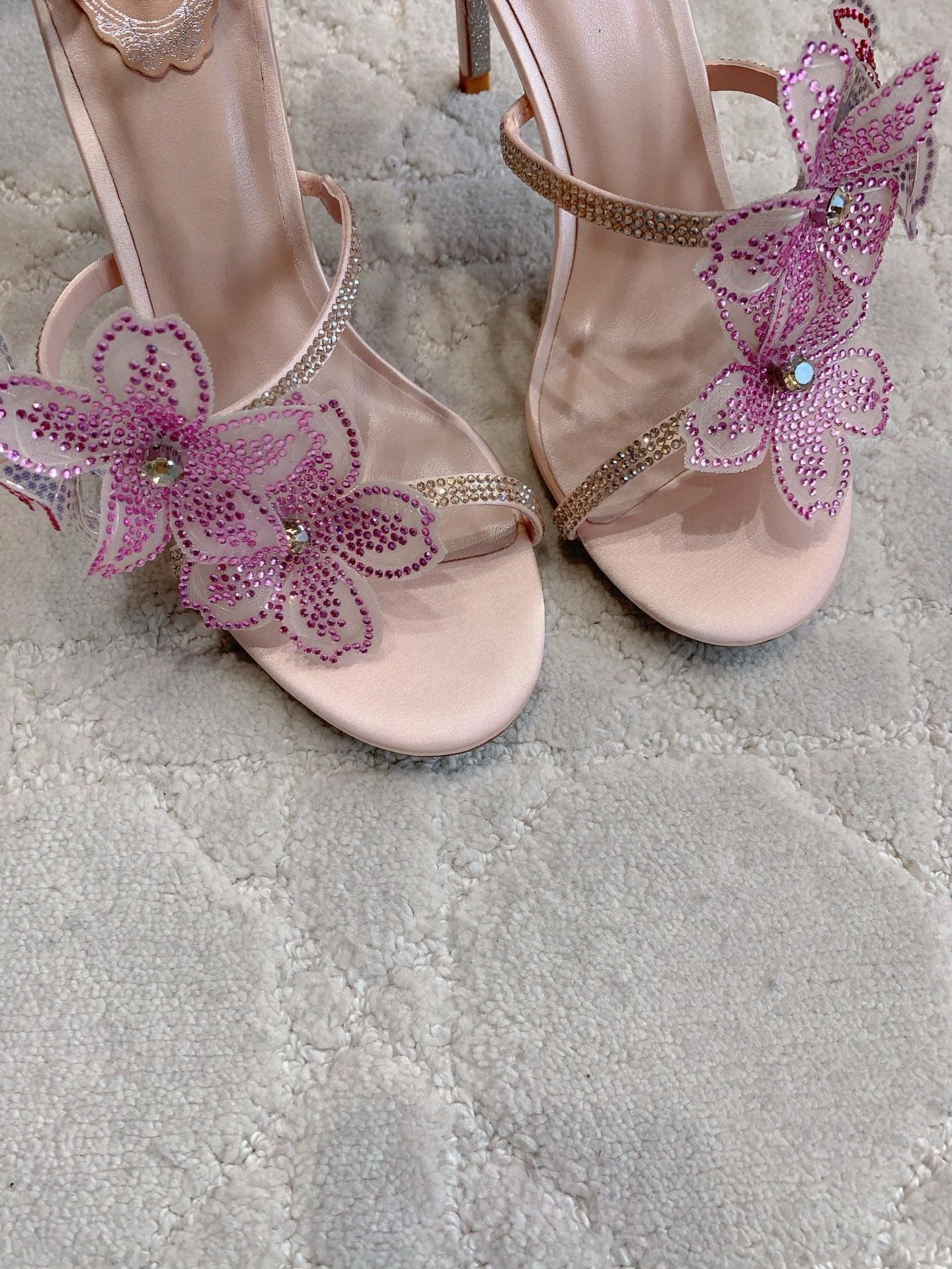 RC Flower Sandals Pink Sheepskin Rhinestones 328465