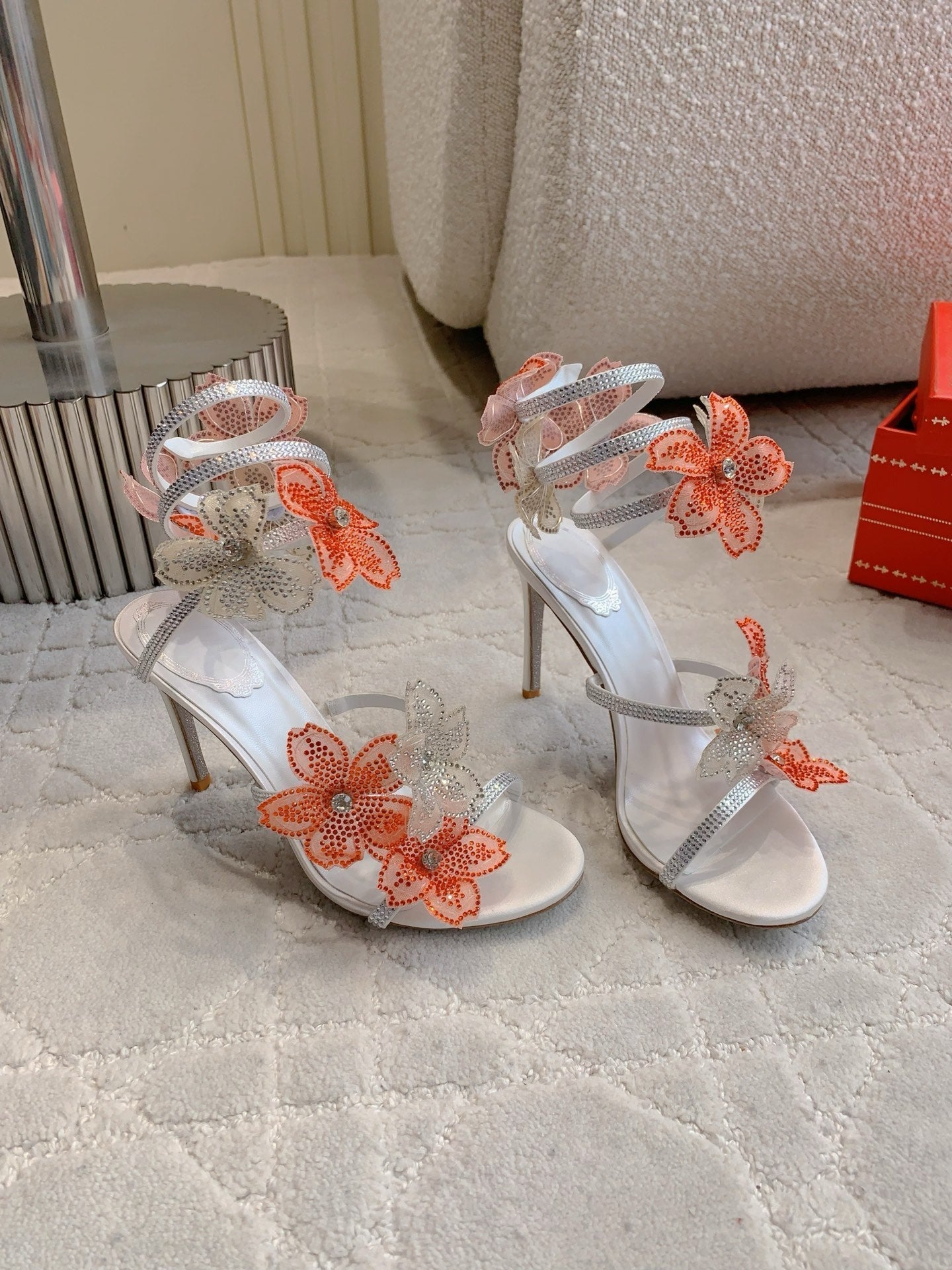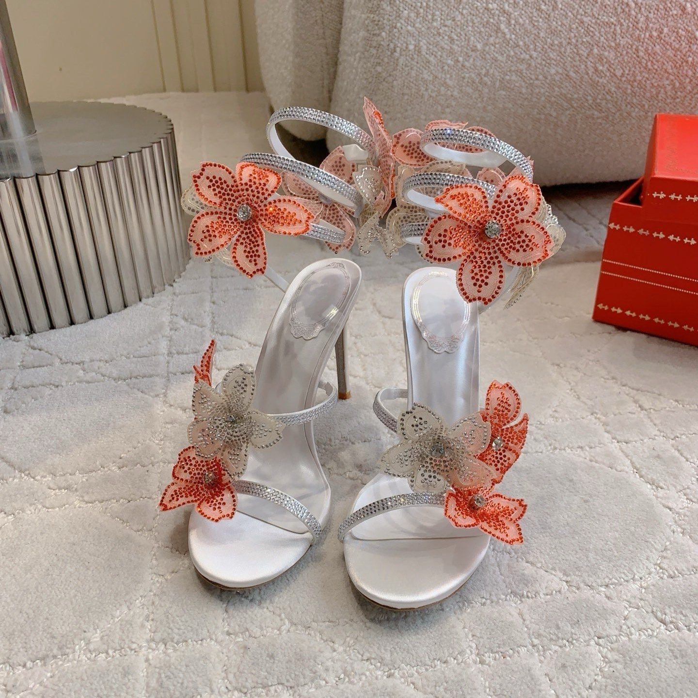 RC Flower Sandals Silver Sheepskin Rhinestones 328464