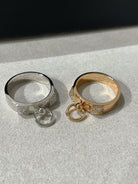 1. Using a length of string or ribbon, wrap it around the base of your finger. To ensure the ring fits comfortably, we suggest measuring your knuckle as well. We recommend selecting a size that will slide on and off your finger easily.