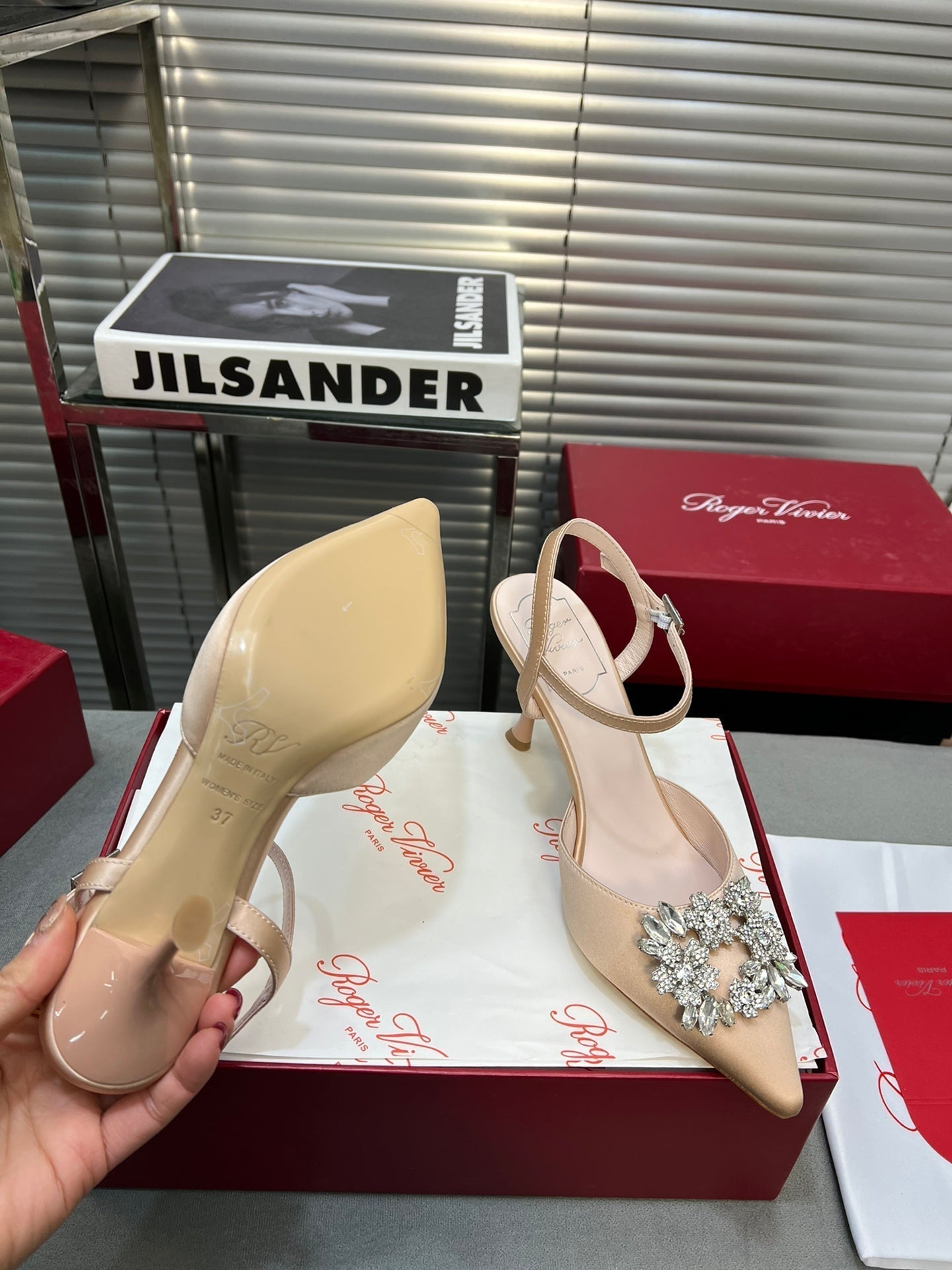 Flower Strass Buckle Slingback Pump 90 Beige Satin