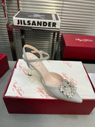Flower Strass Buckle Slingback Pump 90 Grey Crystal Satin