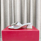 Viv 25 Diamond Mid Heel Slides Silver Cowhide 283037