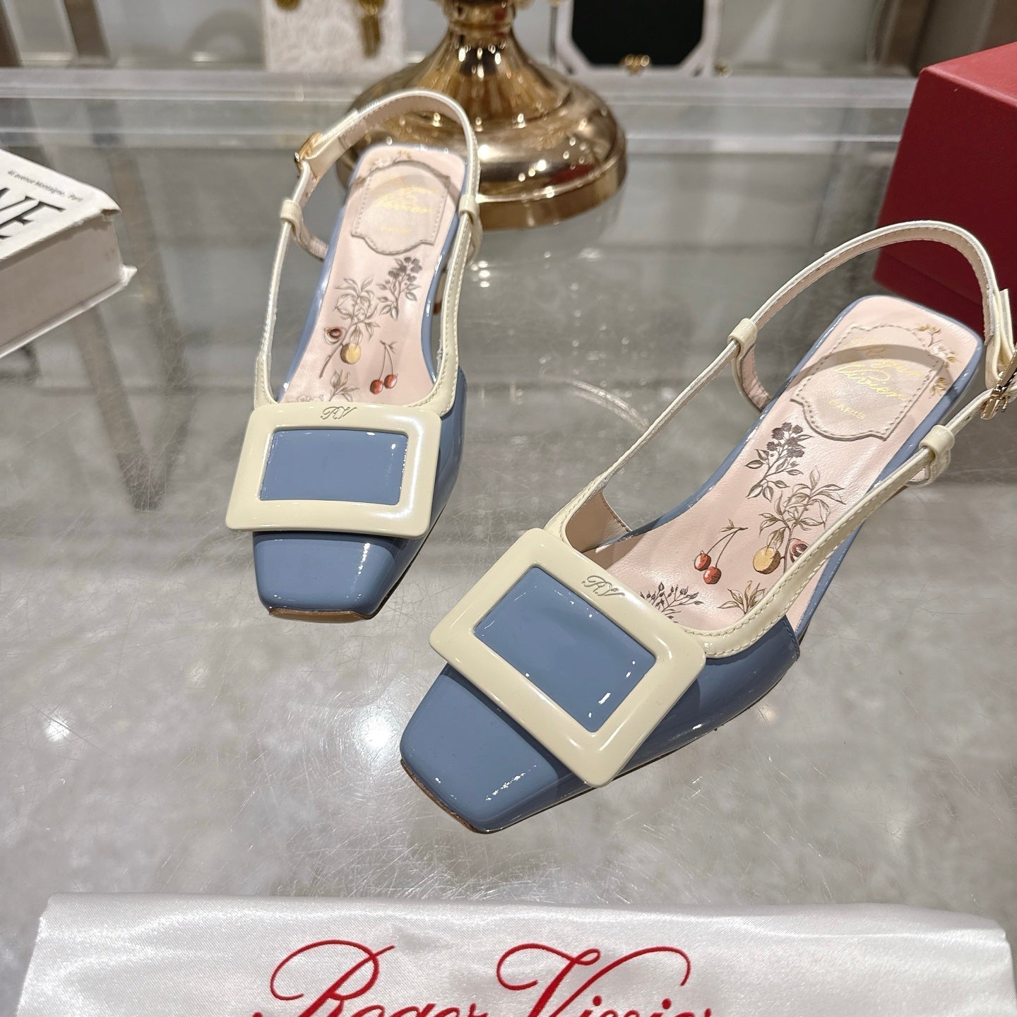 Viv 25 Flower Slingback Blue Italian Leather 300787