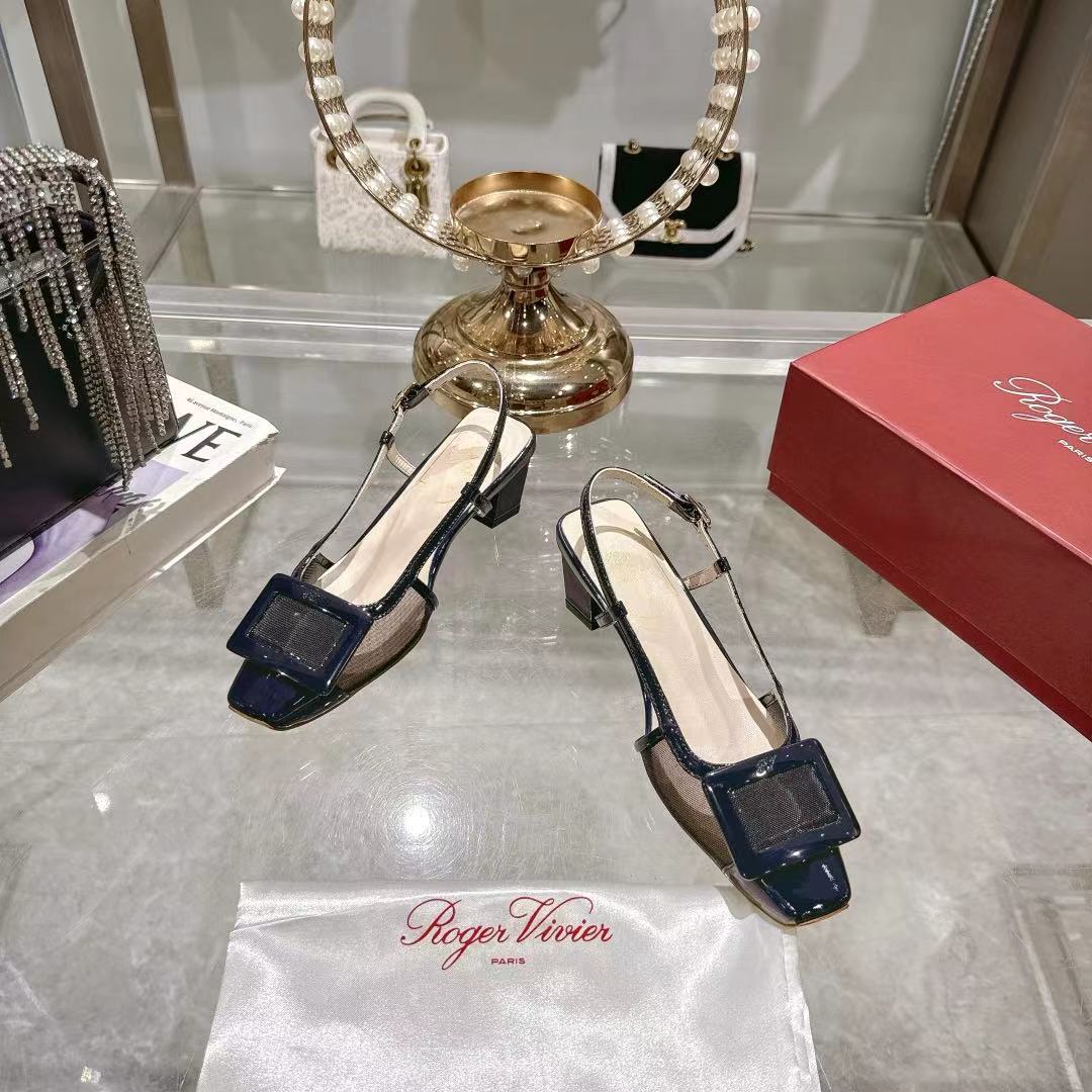 Viv 25 Slingback Navy Blue Mesh Italian Leather 300781