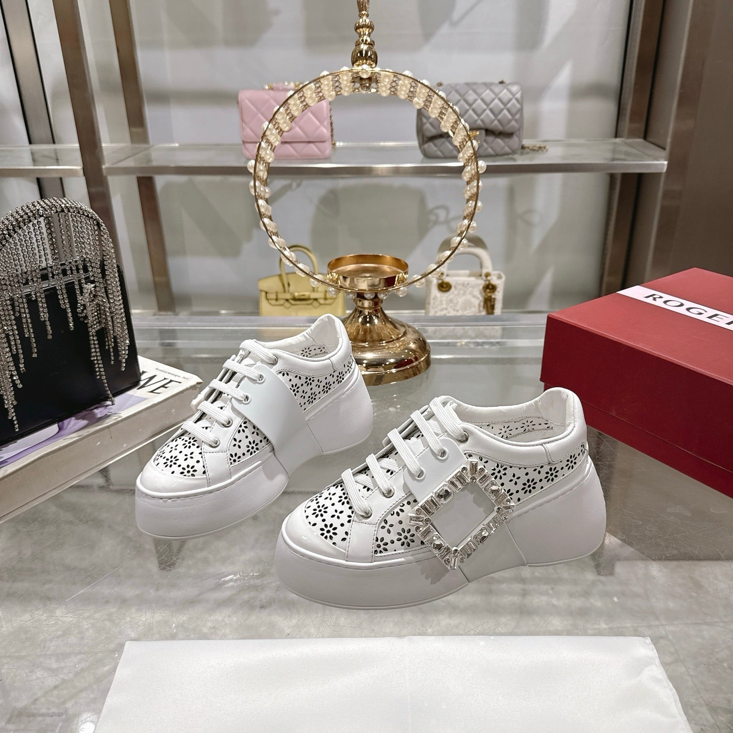 Viv 25 Square Buckle Platform White Cowhide 262981