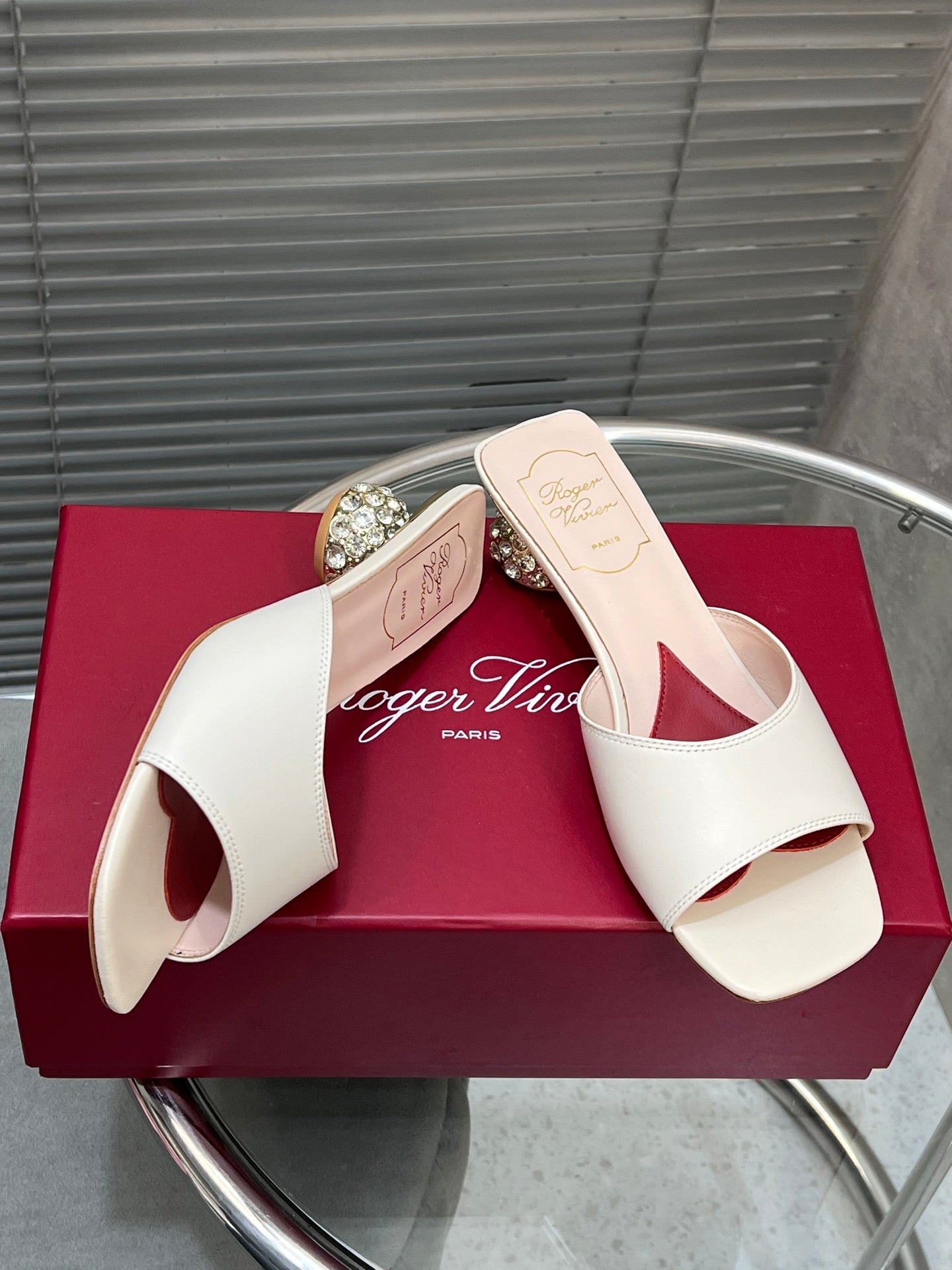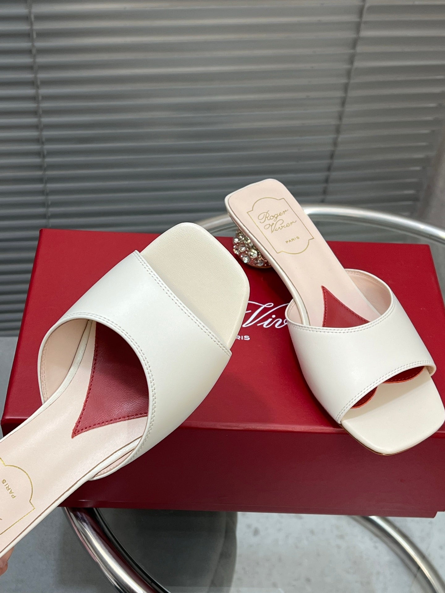 Viv Diamond Sole Mules White Cowhide 267688