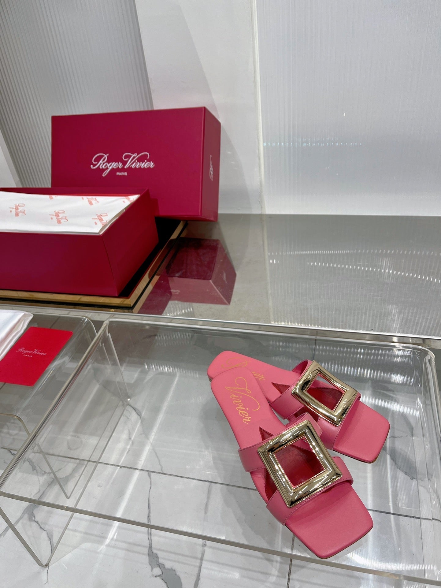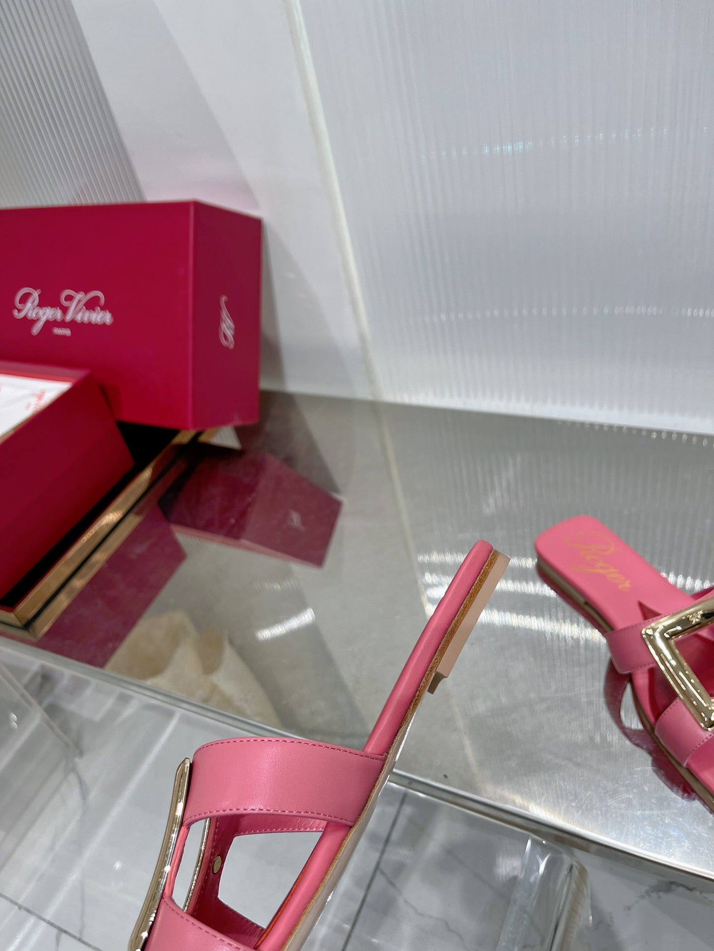 Viv Simple Slides Pink Cowhide 295938