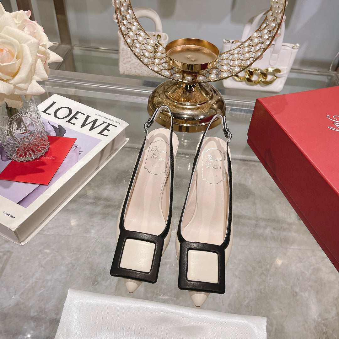 Belle Viv Metal Buckle Slingback Pumps 65 White Black Patent Leather