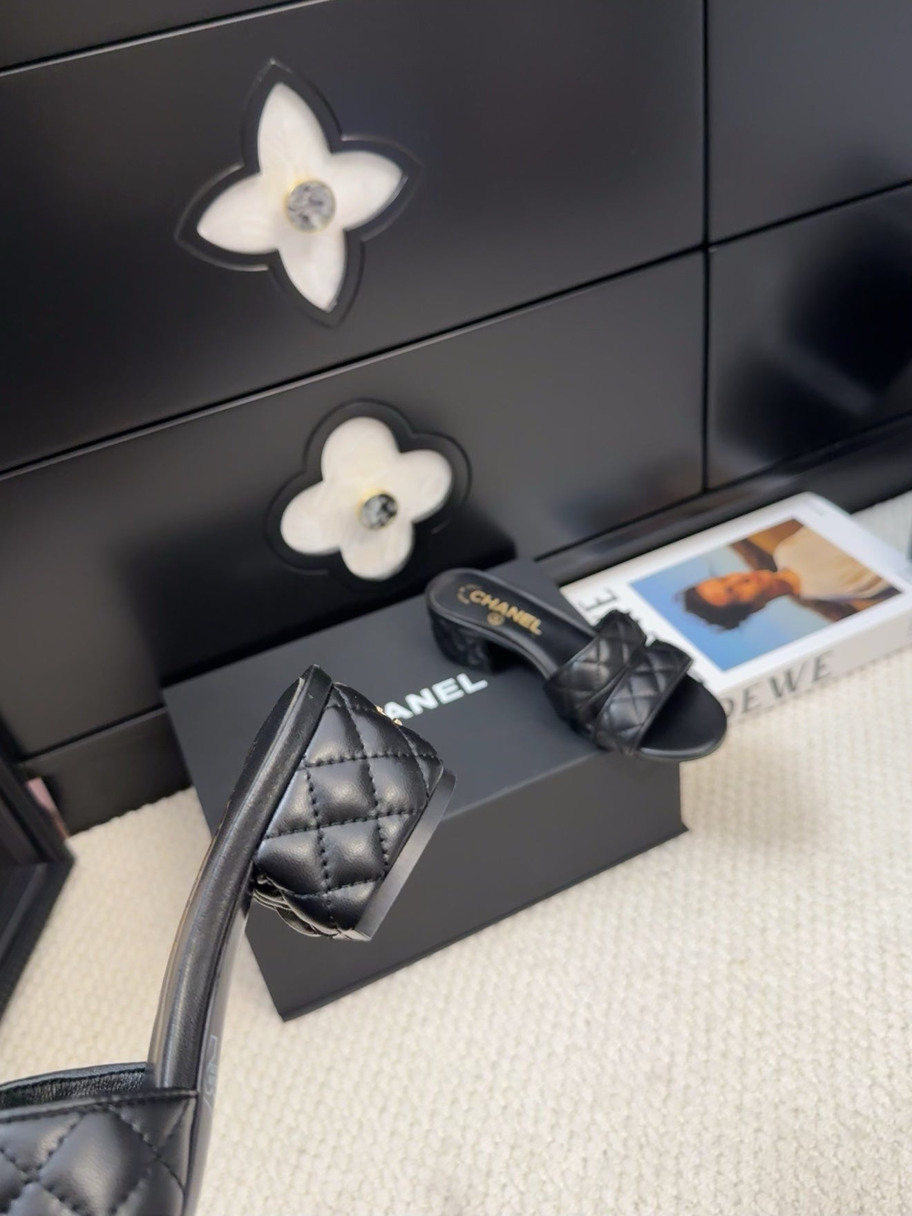 CC 25C Mule Sandal 45mm Open Heel Black Lambskin 233496