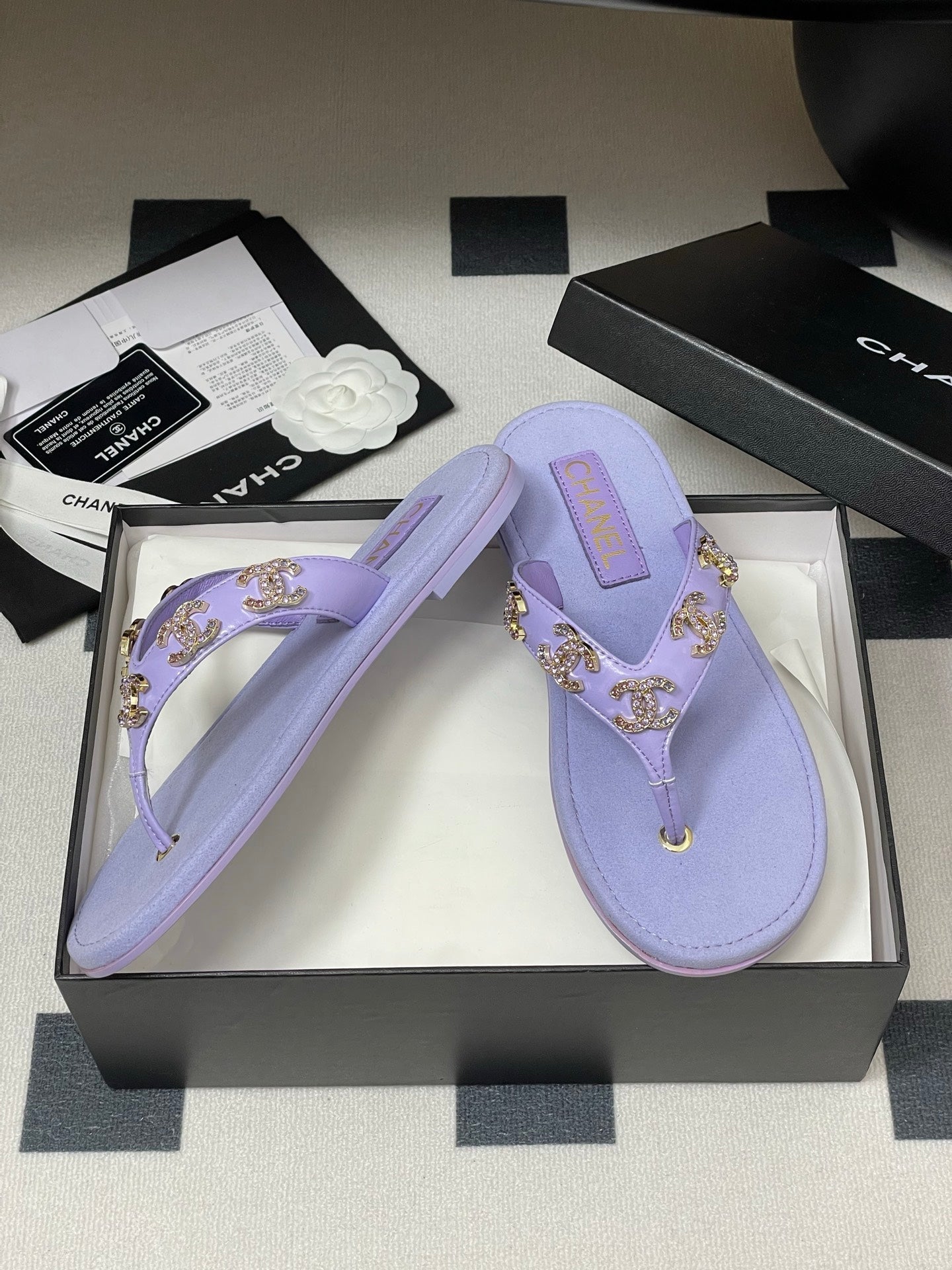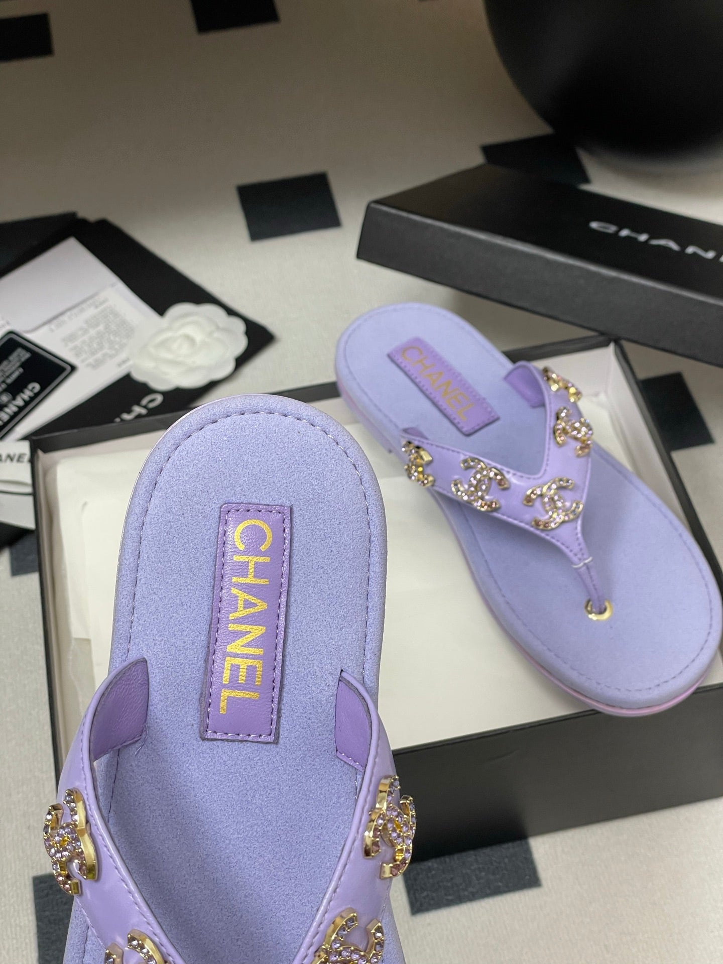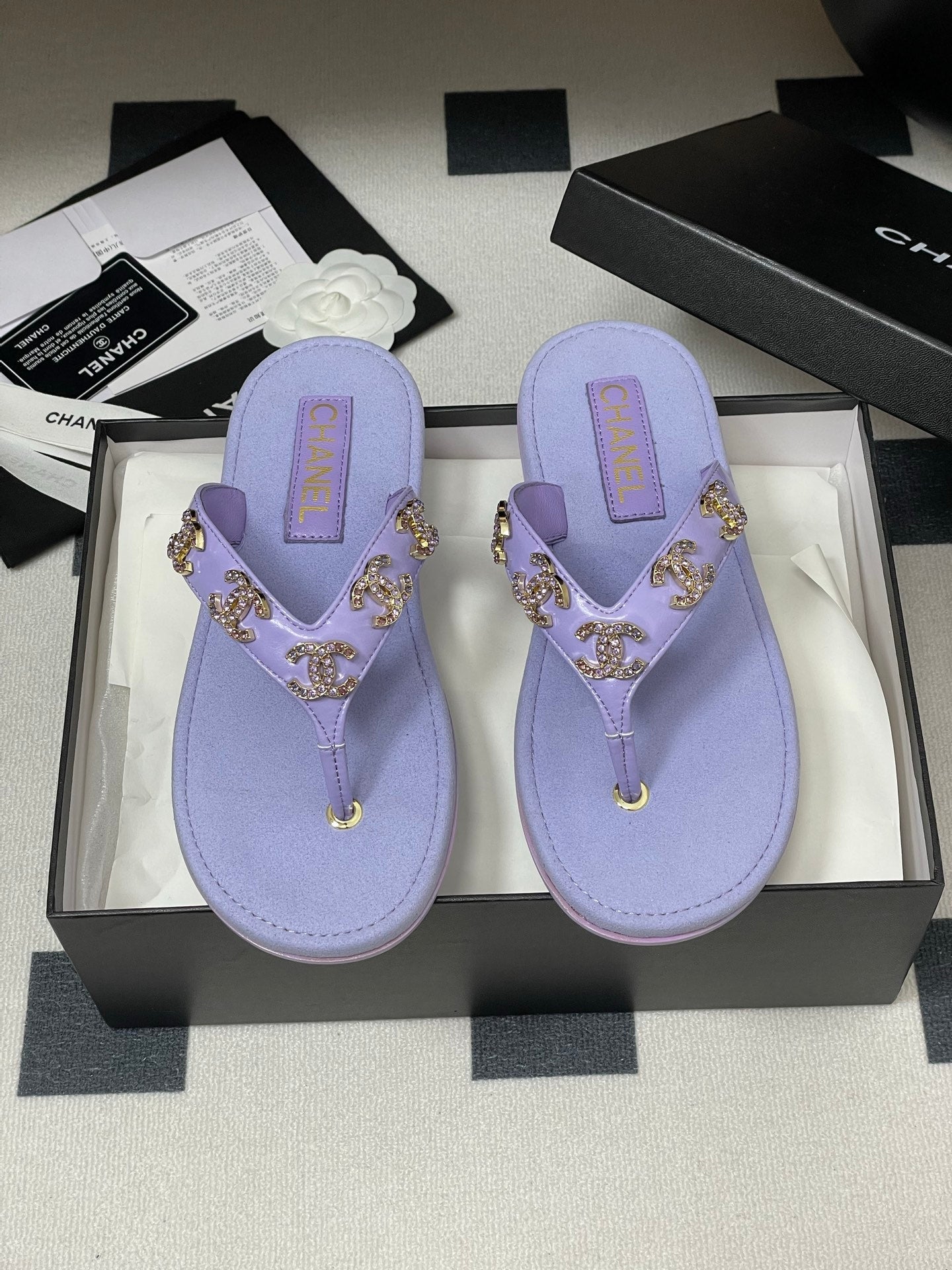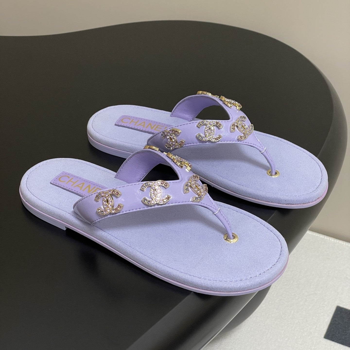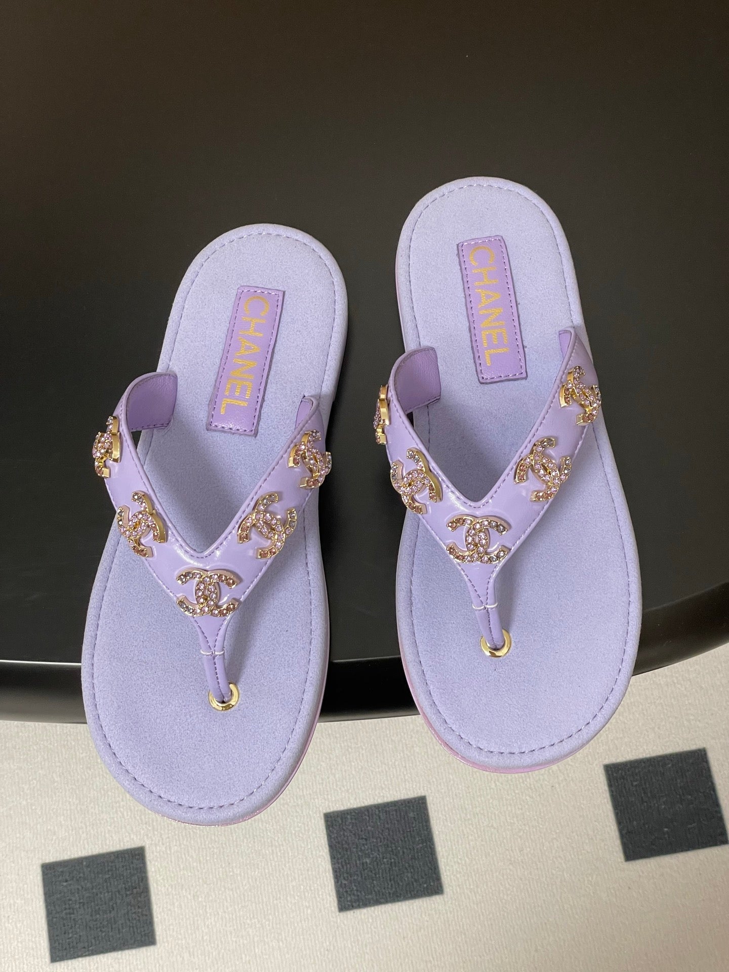 CC 25P Double C 5 Motifs Thongs Sandal Purple Sheepskin 247694