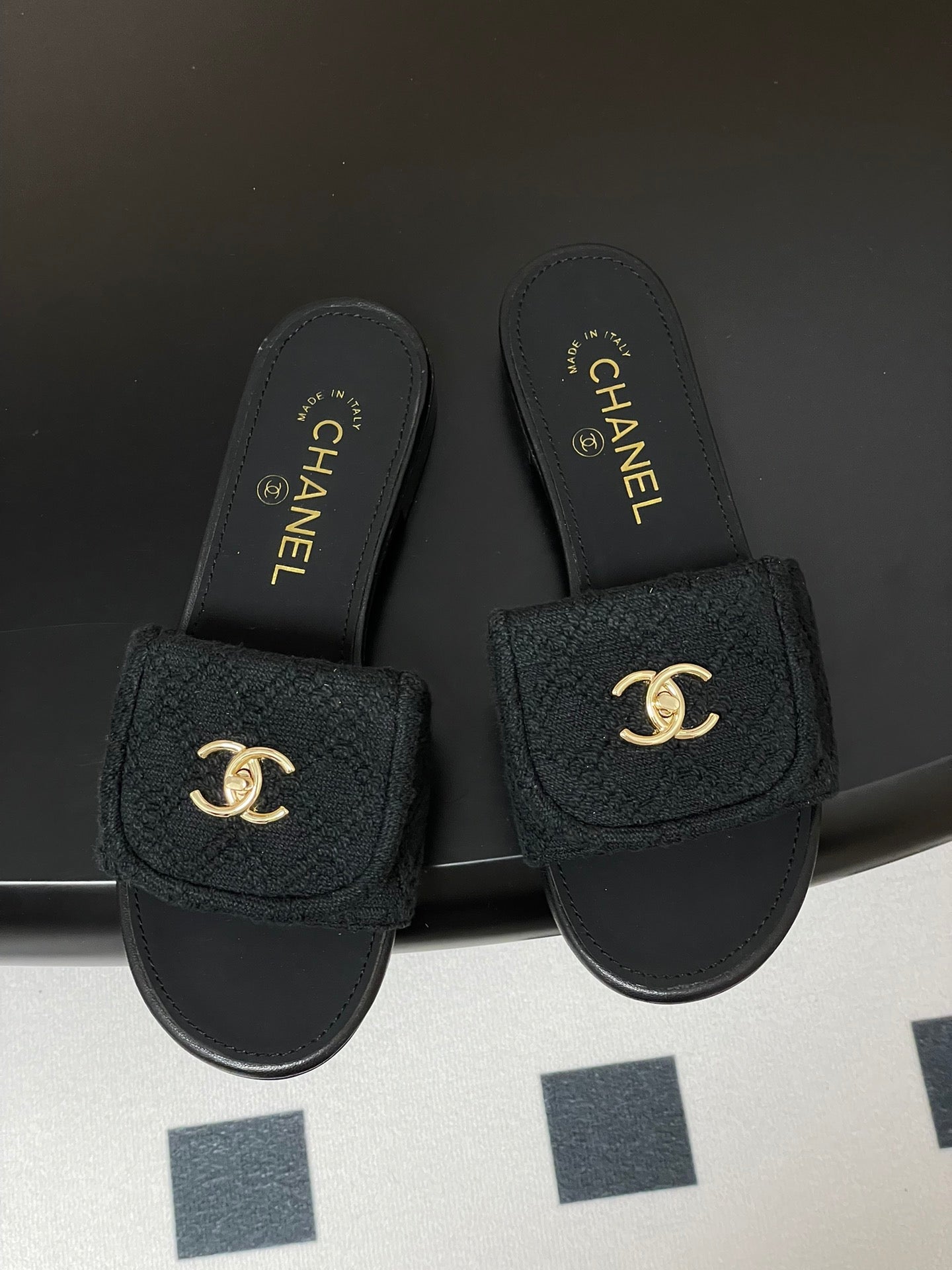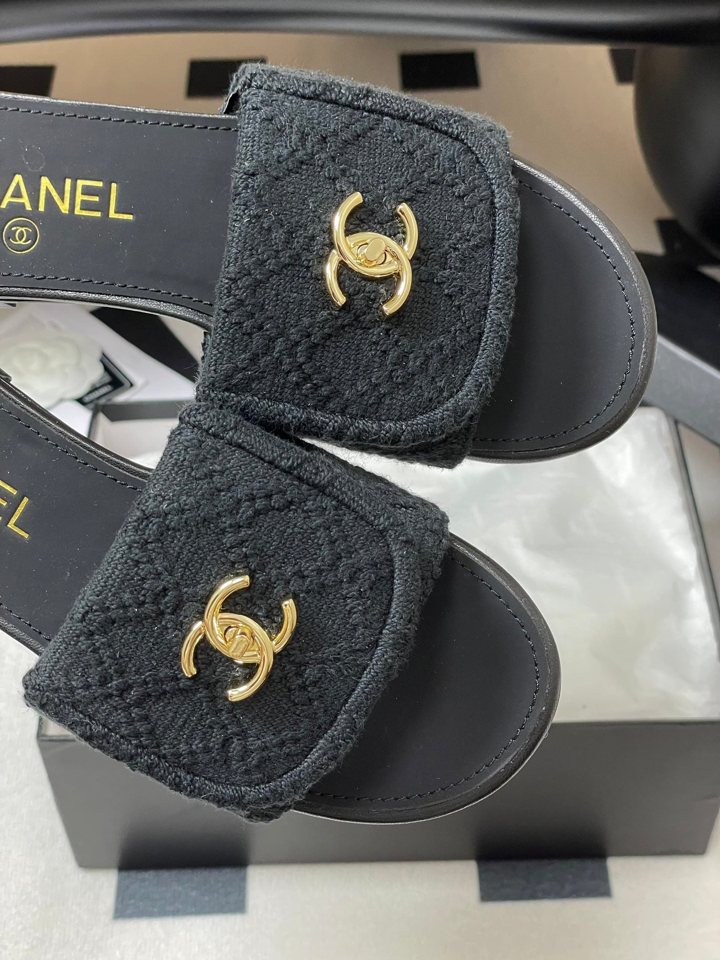 CC 25S Buckle Bag Mule Black Fabric and Sheepskin 247597