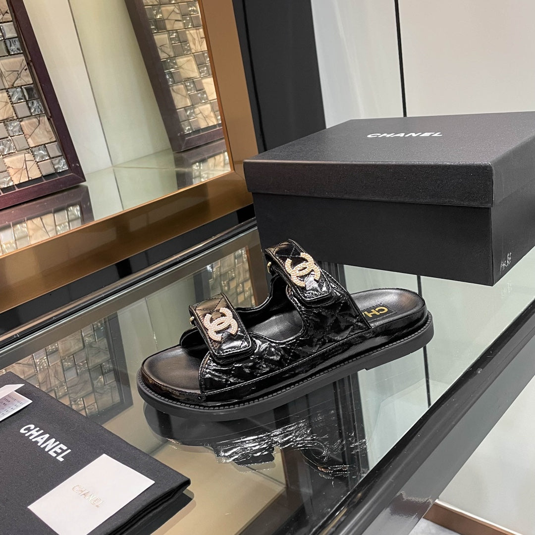 CC 25S Dad Sandal Mule Black Patent Calfskin