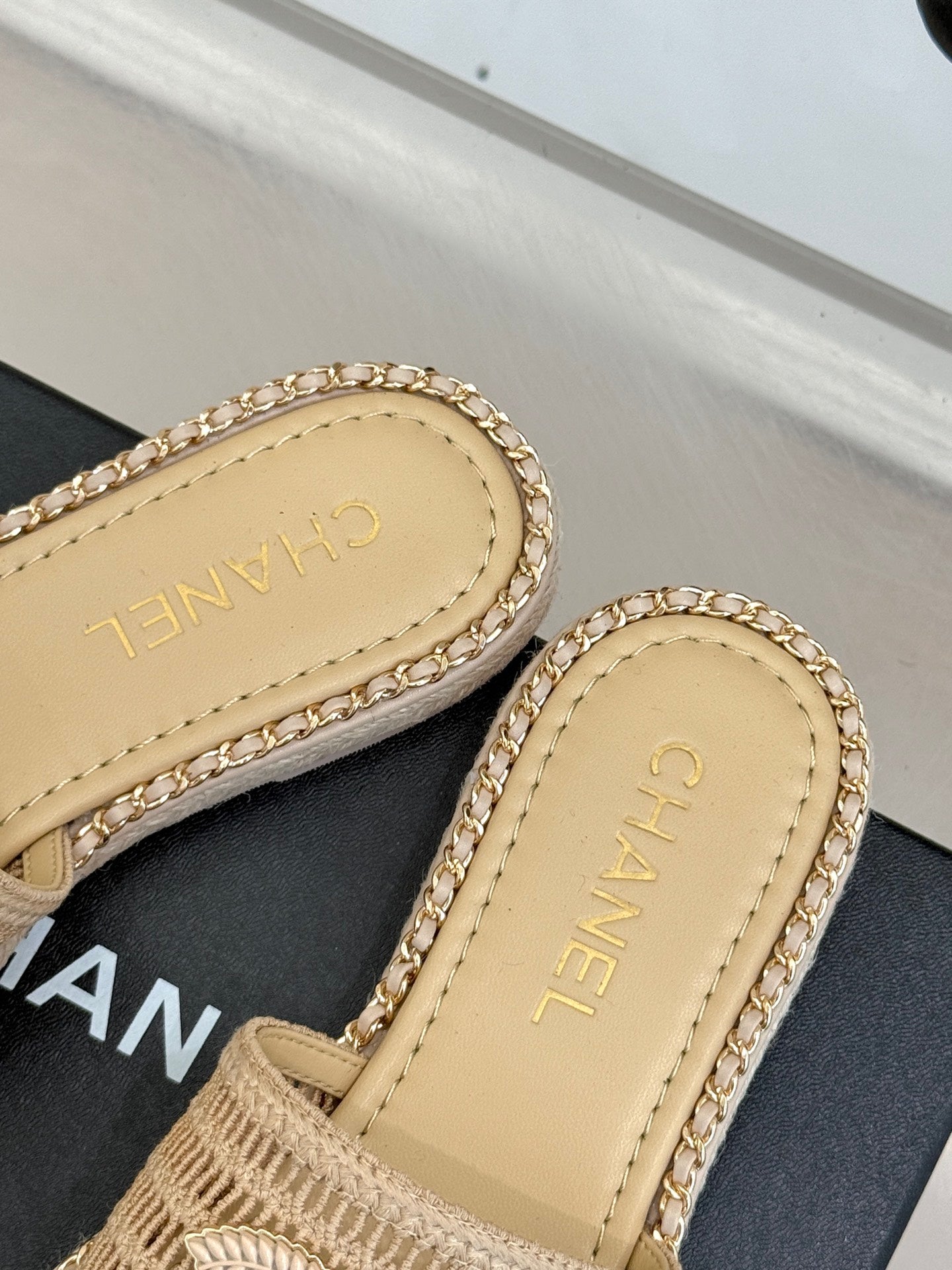 CC Mesh Hollow Chain Double C Thick-Soled Slippers 20mm Beige 265645