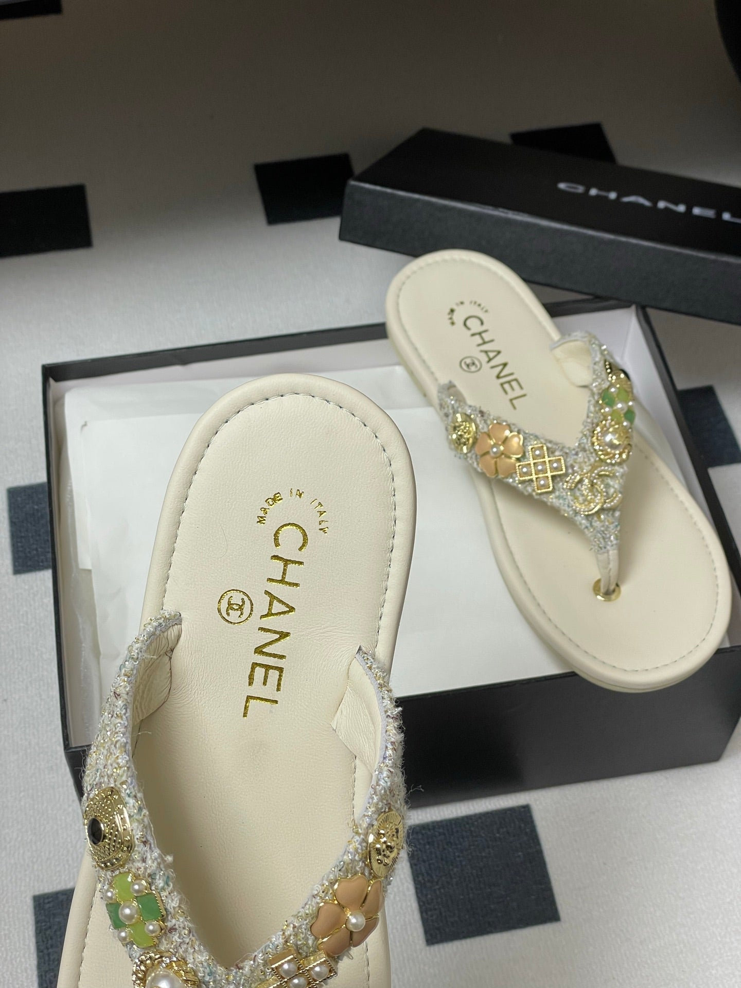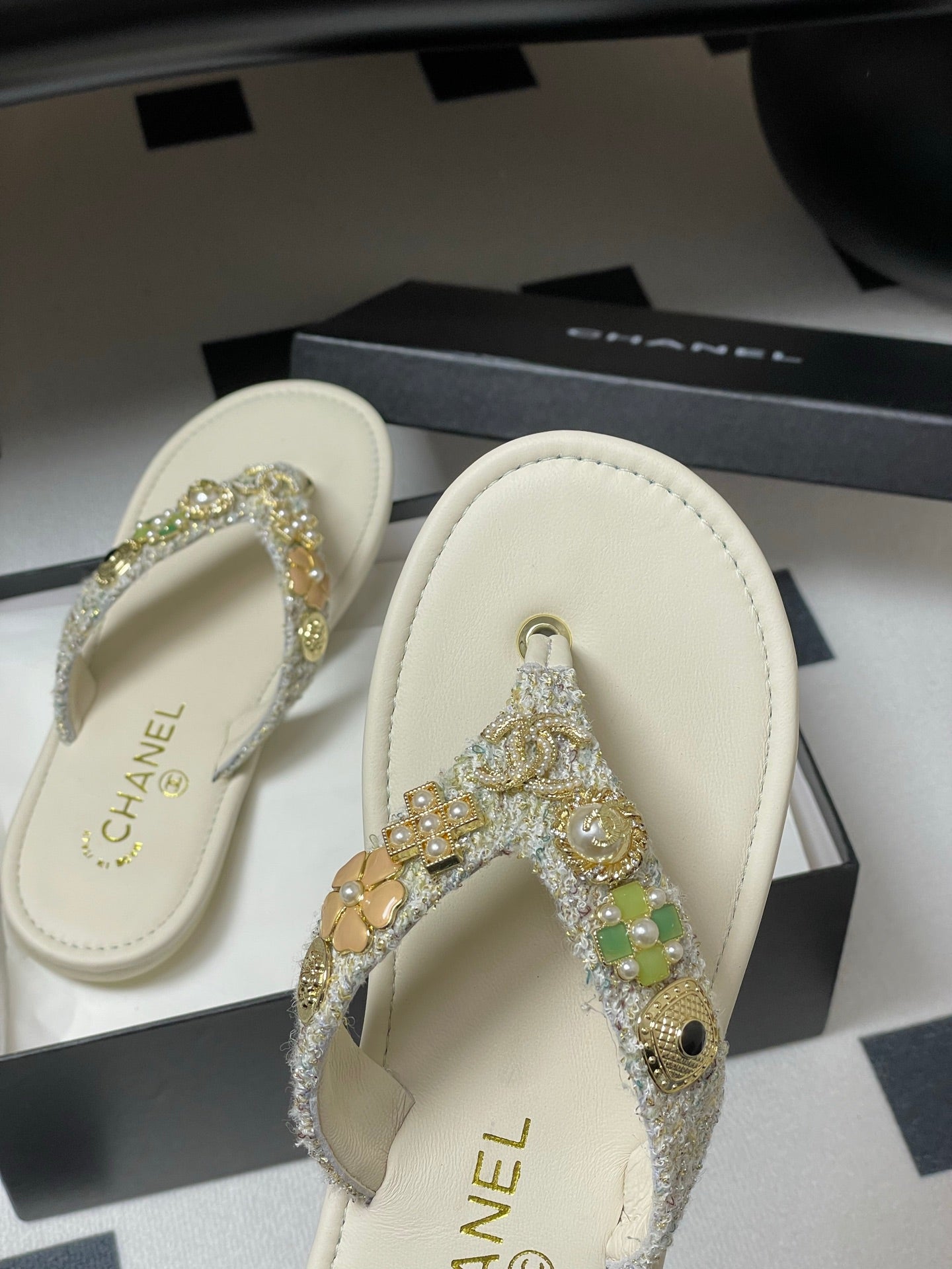 CC Spring-Summer 25P Thongs Cream Tweed anb Metal 247688