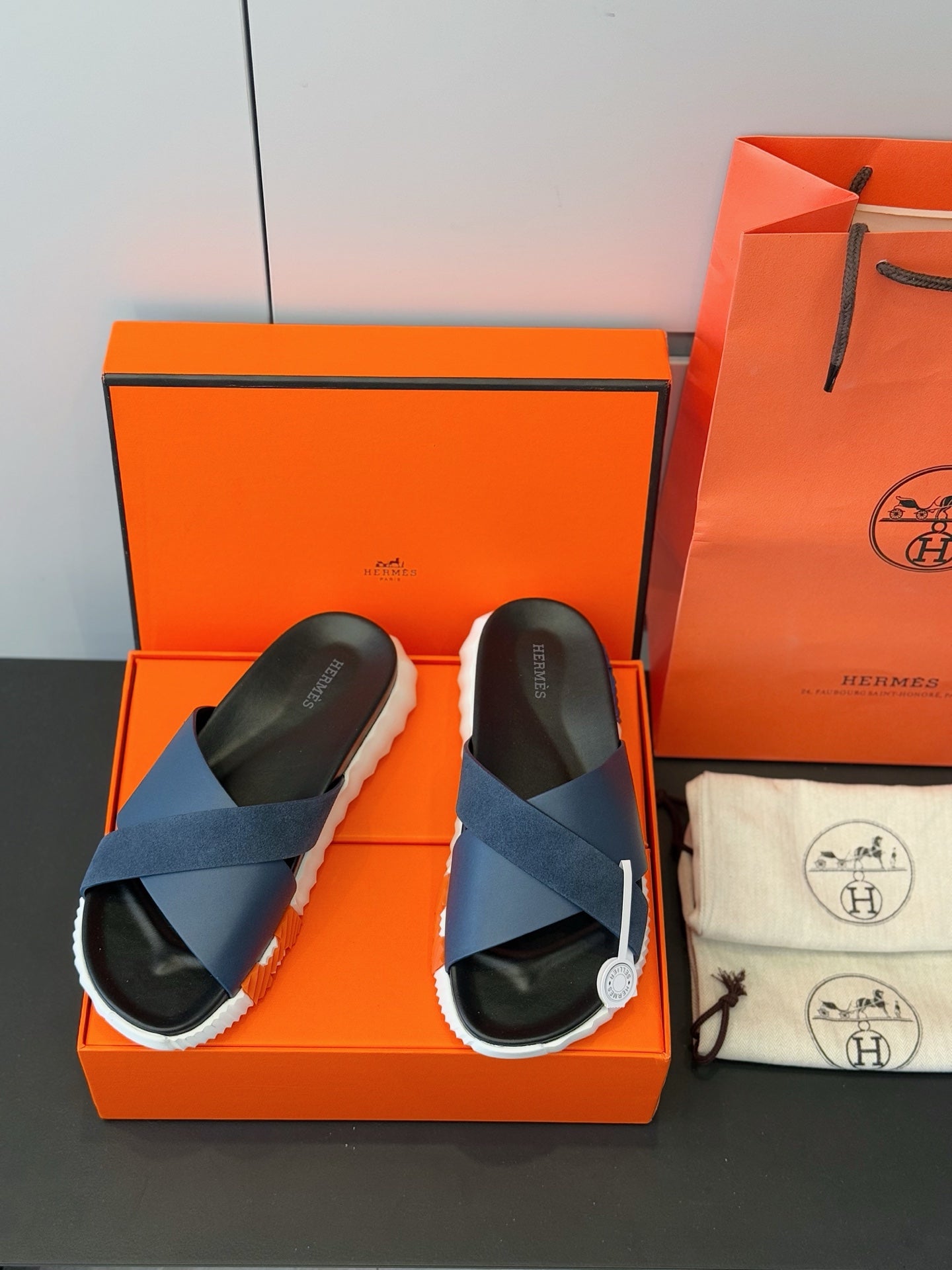 HM Men's Infra Slide Navy Blue Cowhide Suede 599997