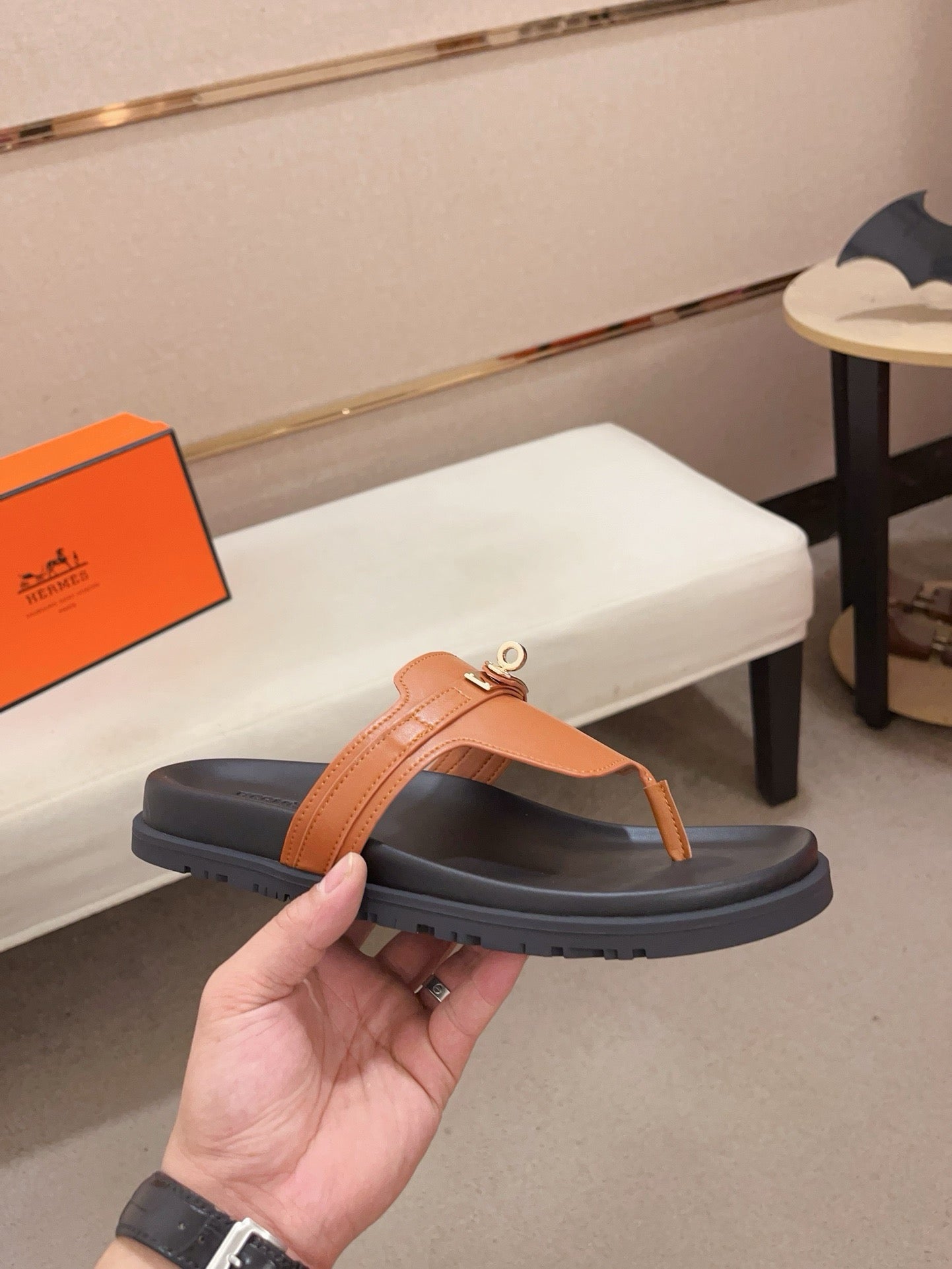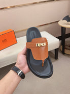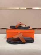 HM Men's Thong Sandals Brown Cowhide 564394