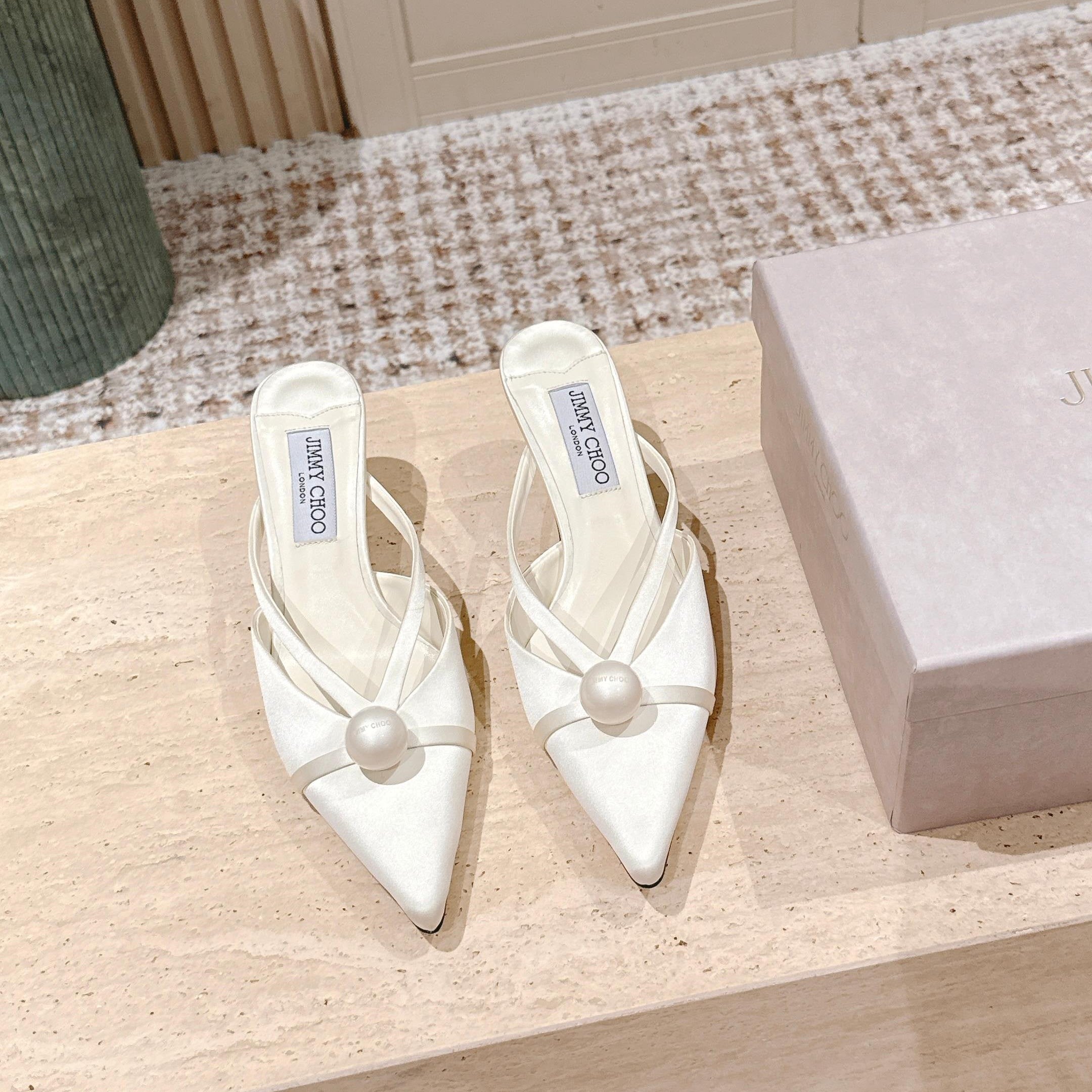 Jimmy Sana Mule 50mm White Satin Fabric 431841