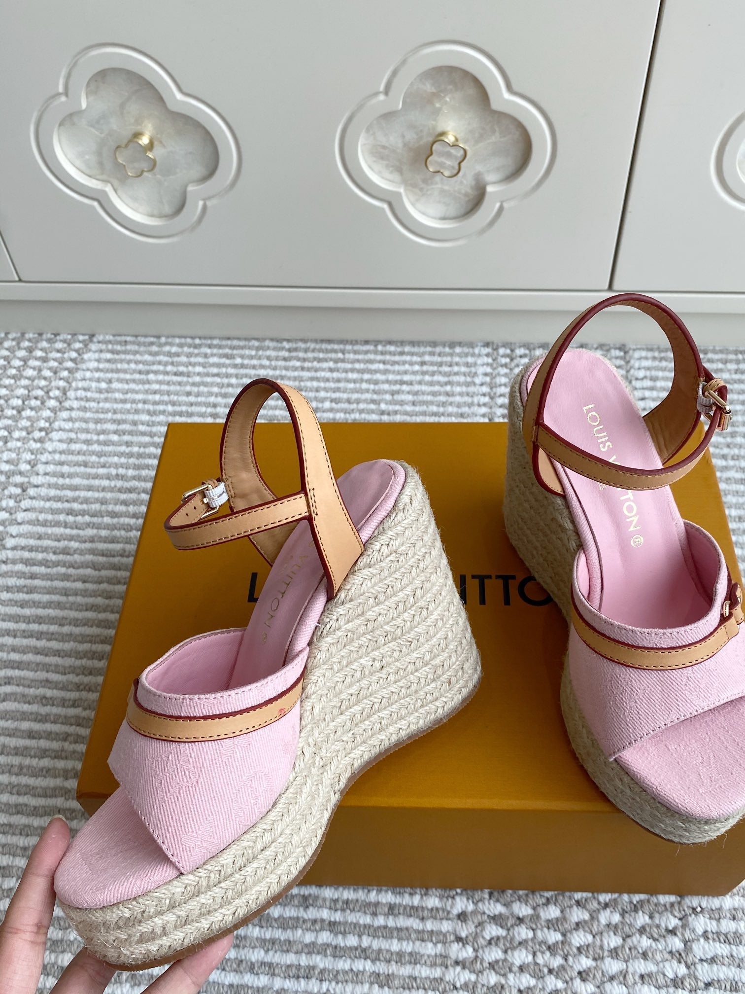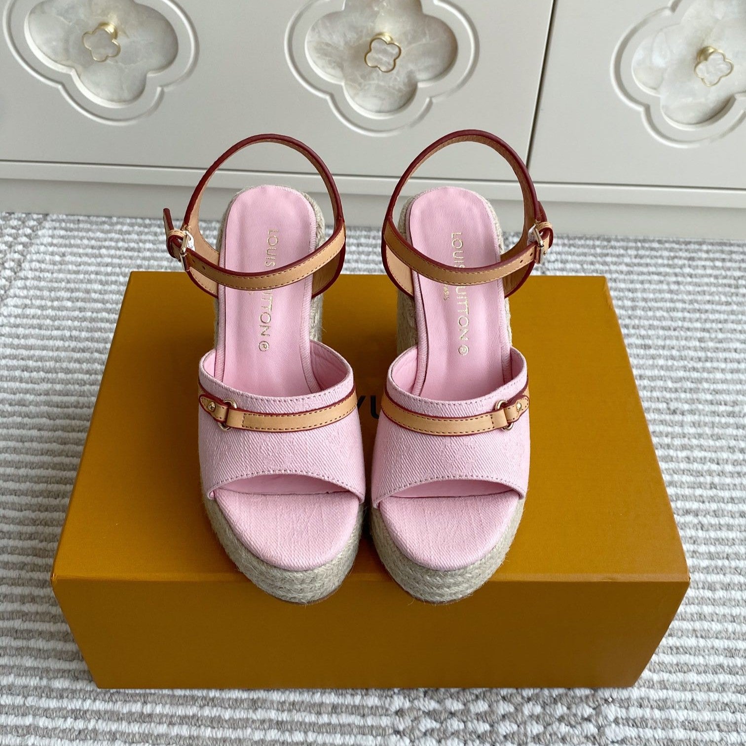 LV Pink Denim Wedge Sandals 11.5cm Pink Sheepskin Lining 291582