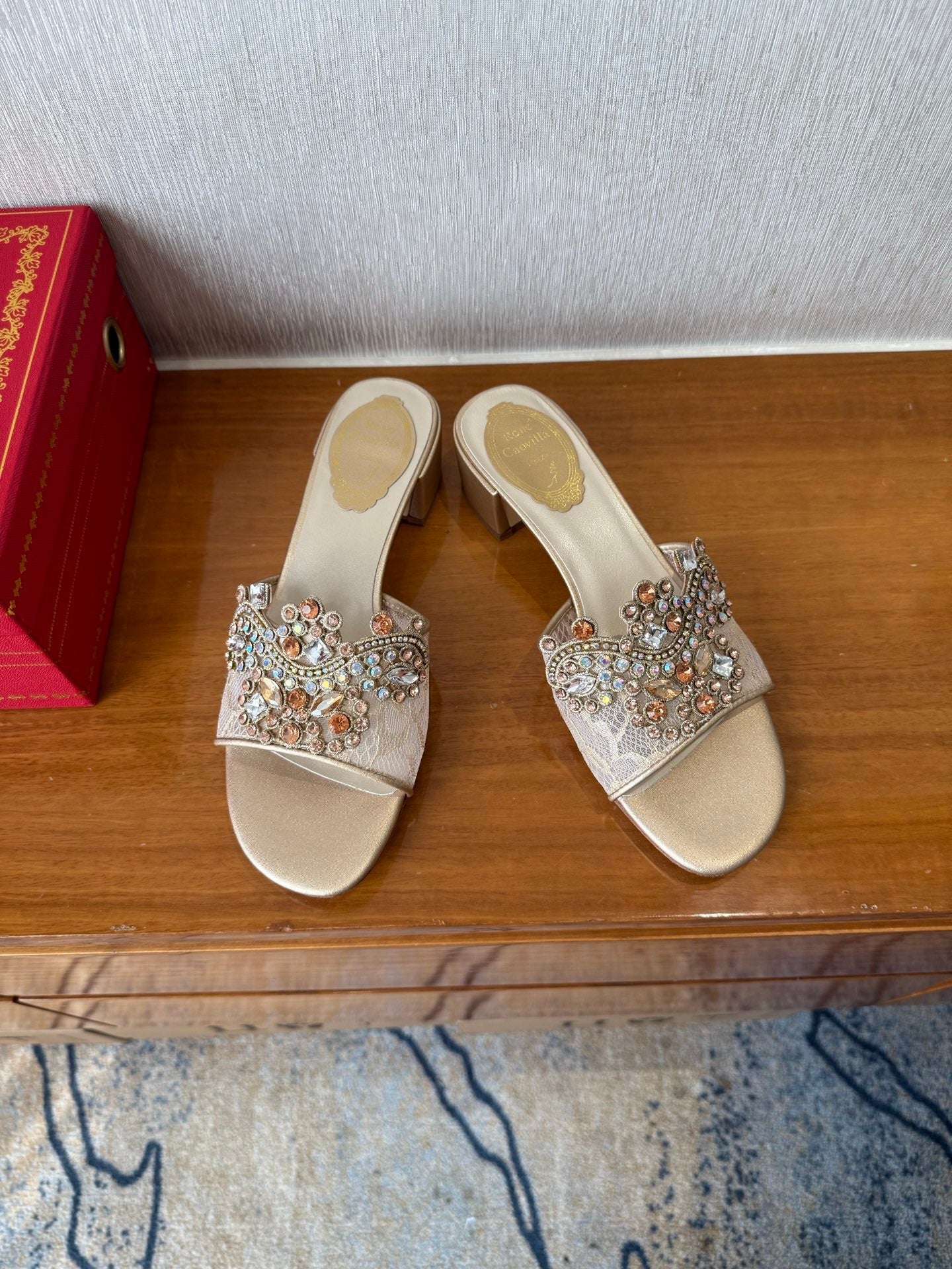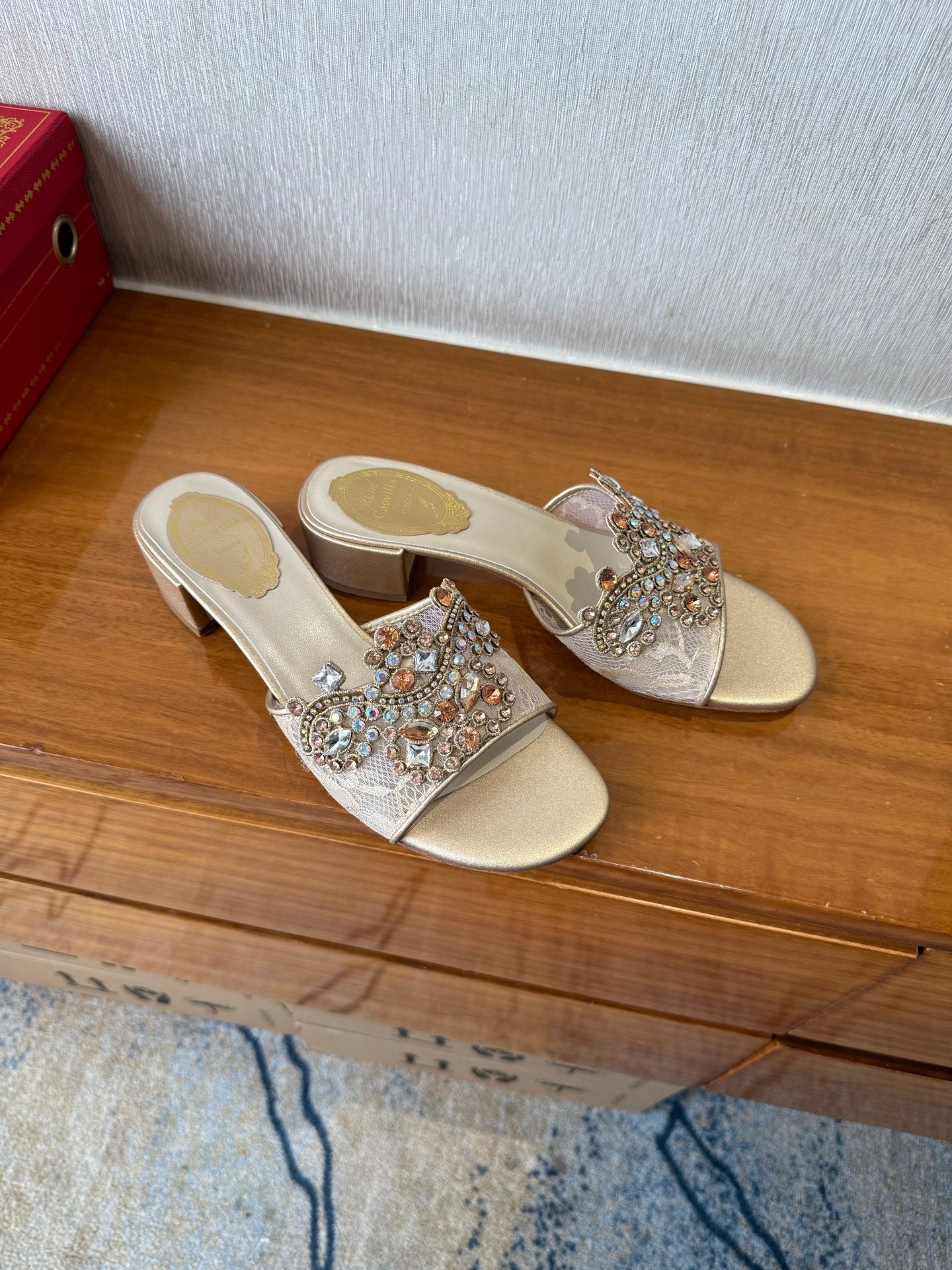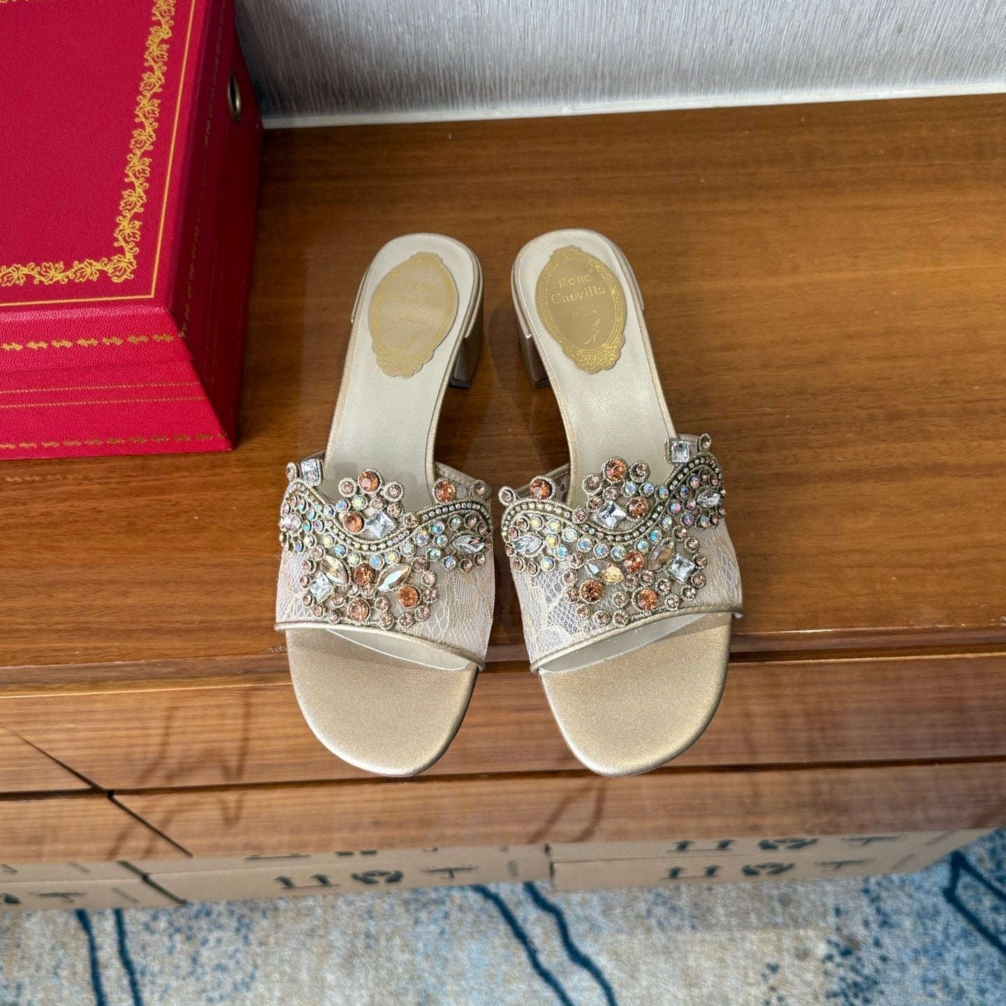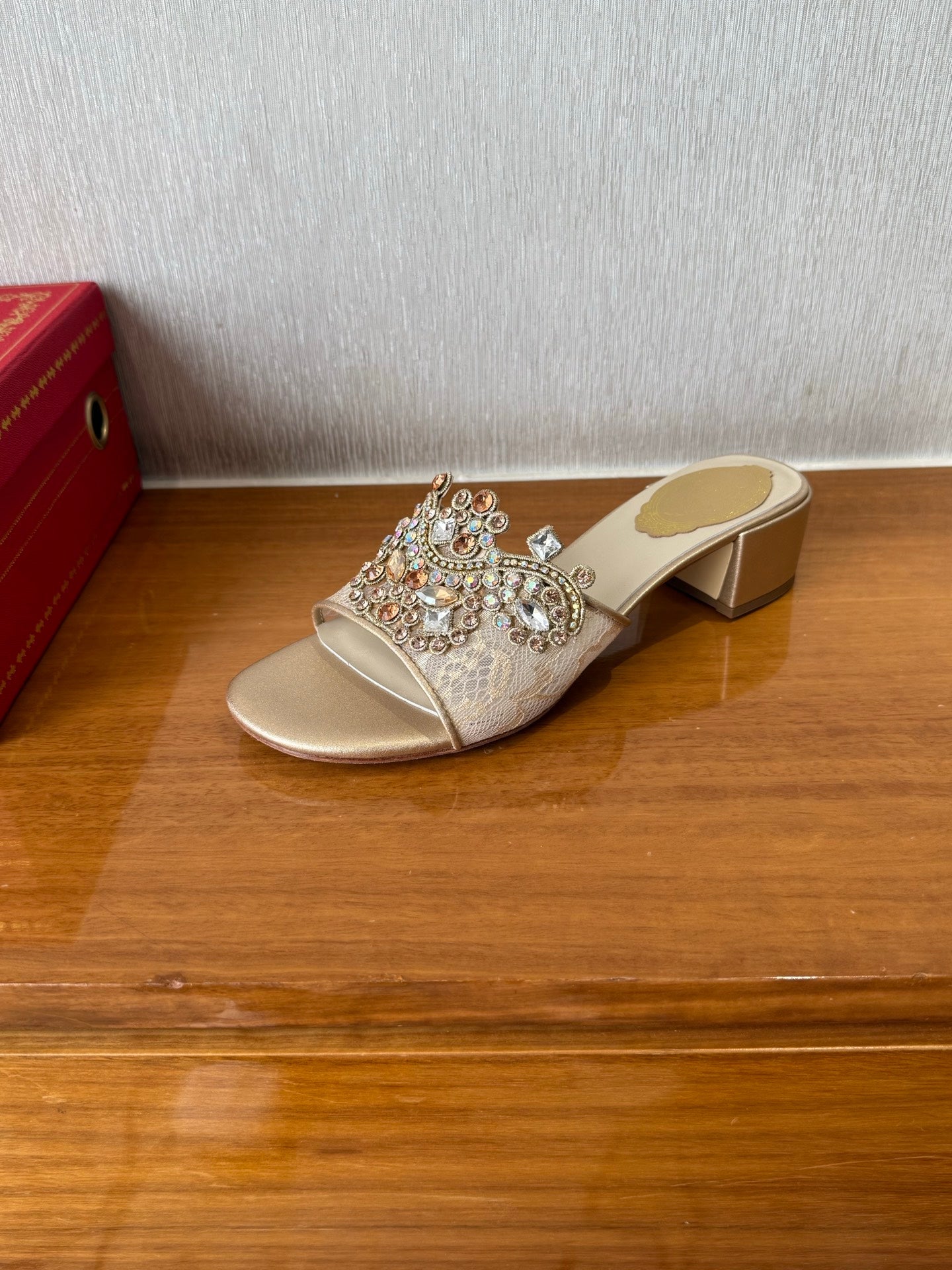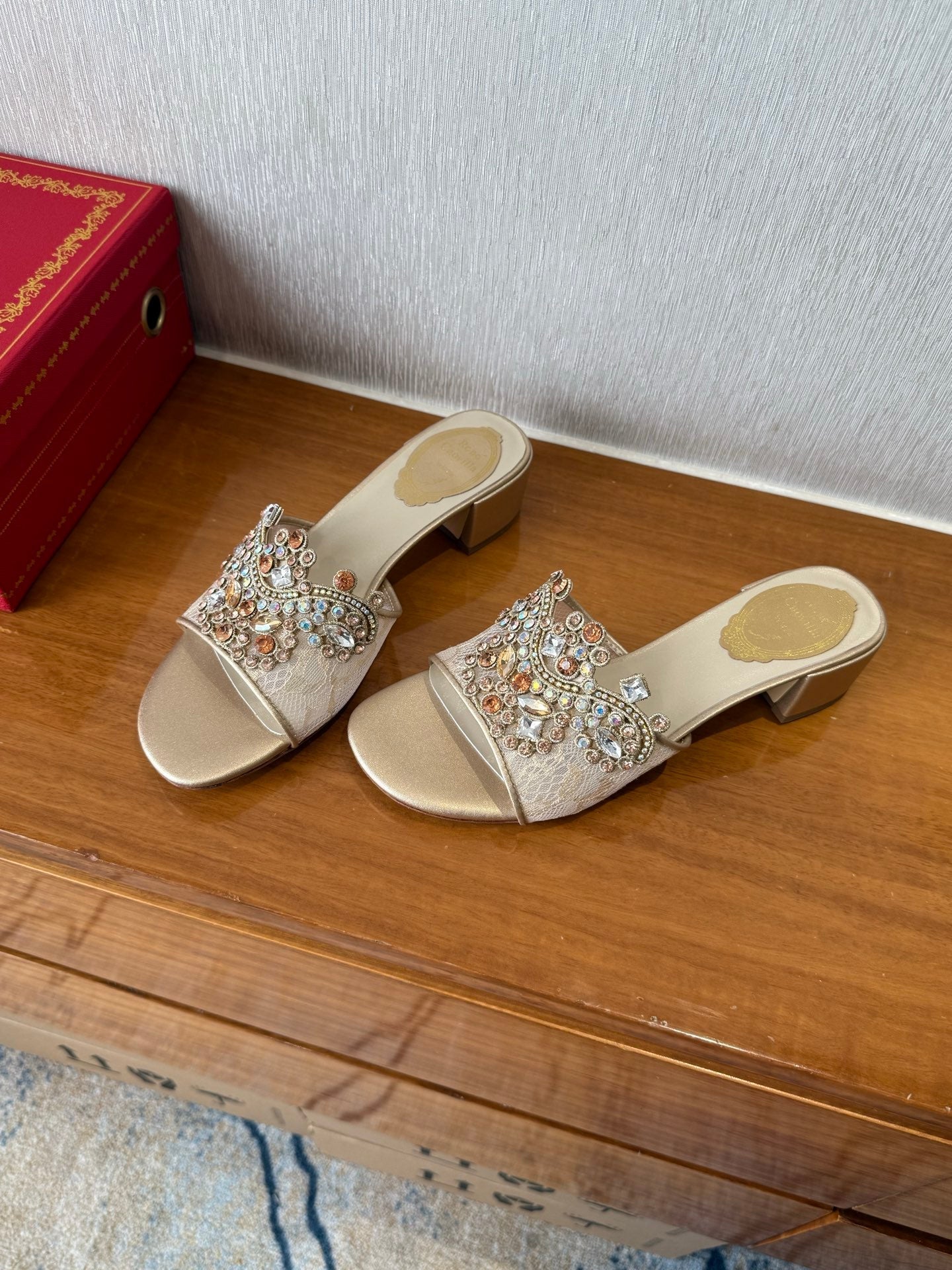 RC 25 Crystal Chandelier Sandals Beige Sheepskin 221962