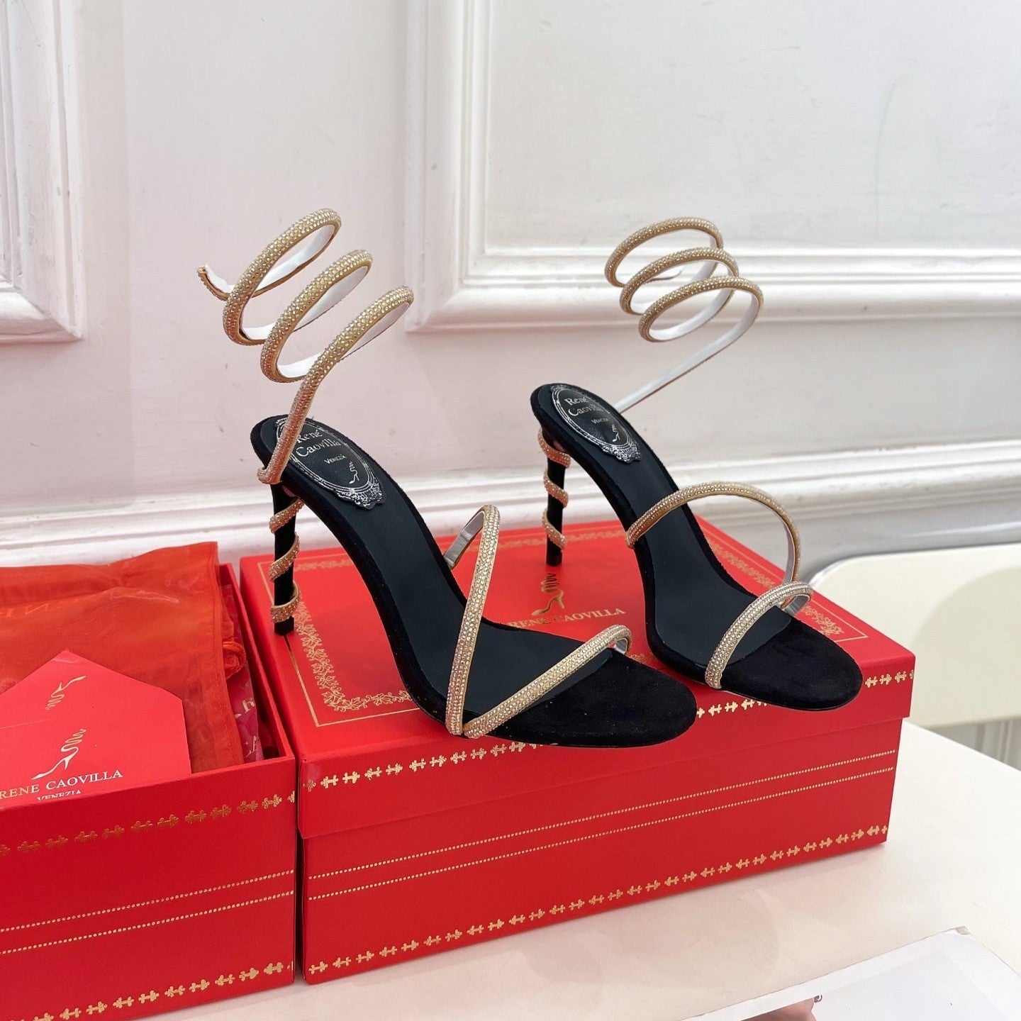RC 25 Crystal Diamond Snake-Shaped High-Heeled Black Gold Silk Rhinestones 253544