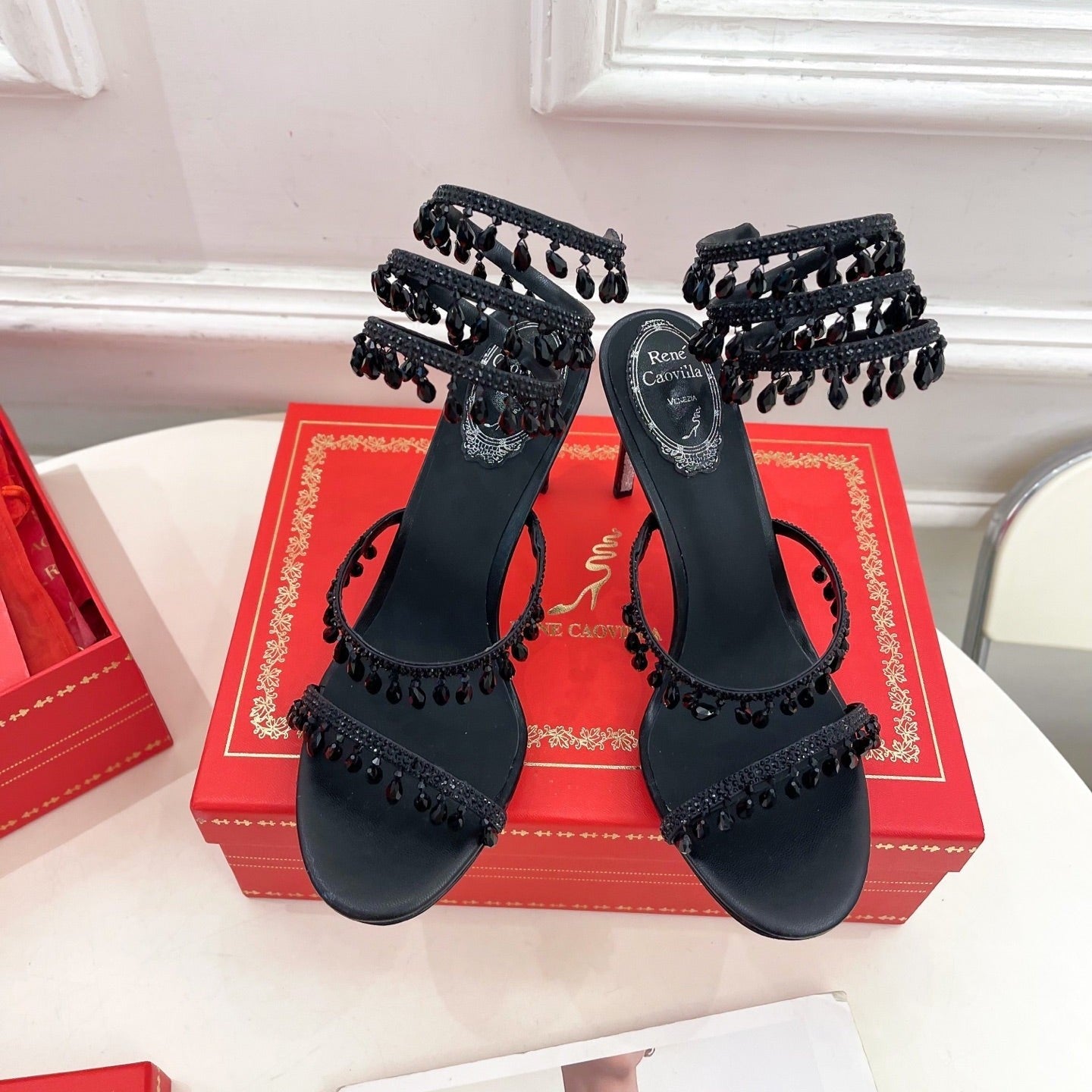 RC 25 Crystal Tassel High-Heeled Sandals Black Silk Crystal Diamond 253539