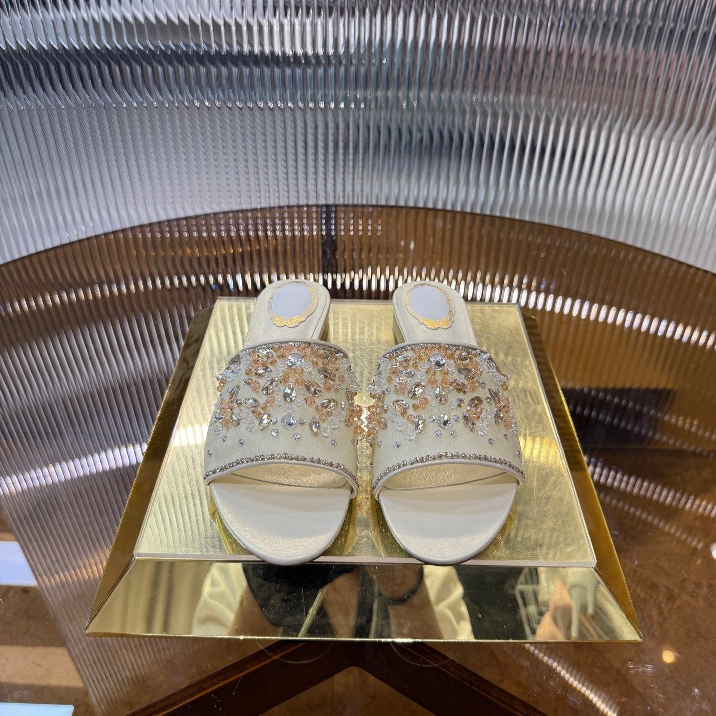 RC 25C Butterfly Flower Sandals Slippers Light Gold Sheepskin Rhinestone 275766
