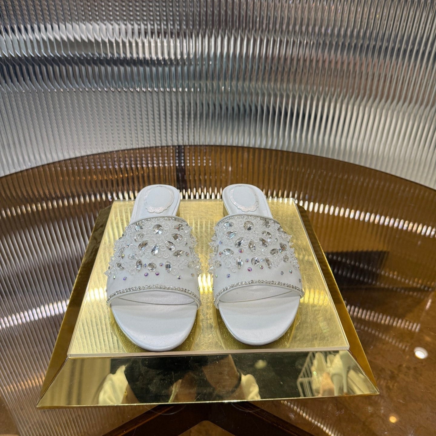 RC 25C Butterfly Flower Sandals Slippers White Sheepskin Rhinestone 275764