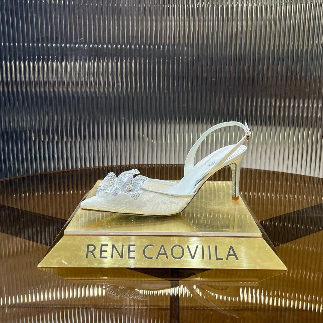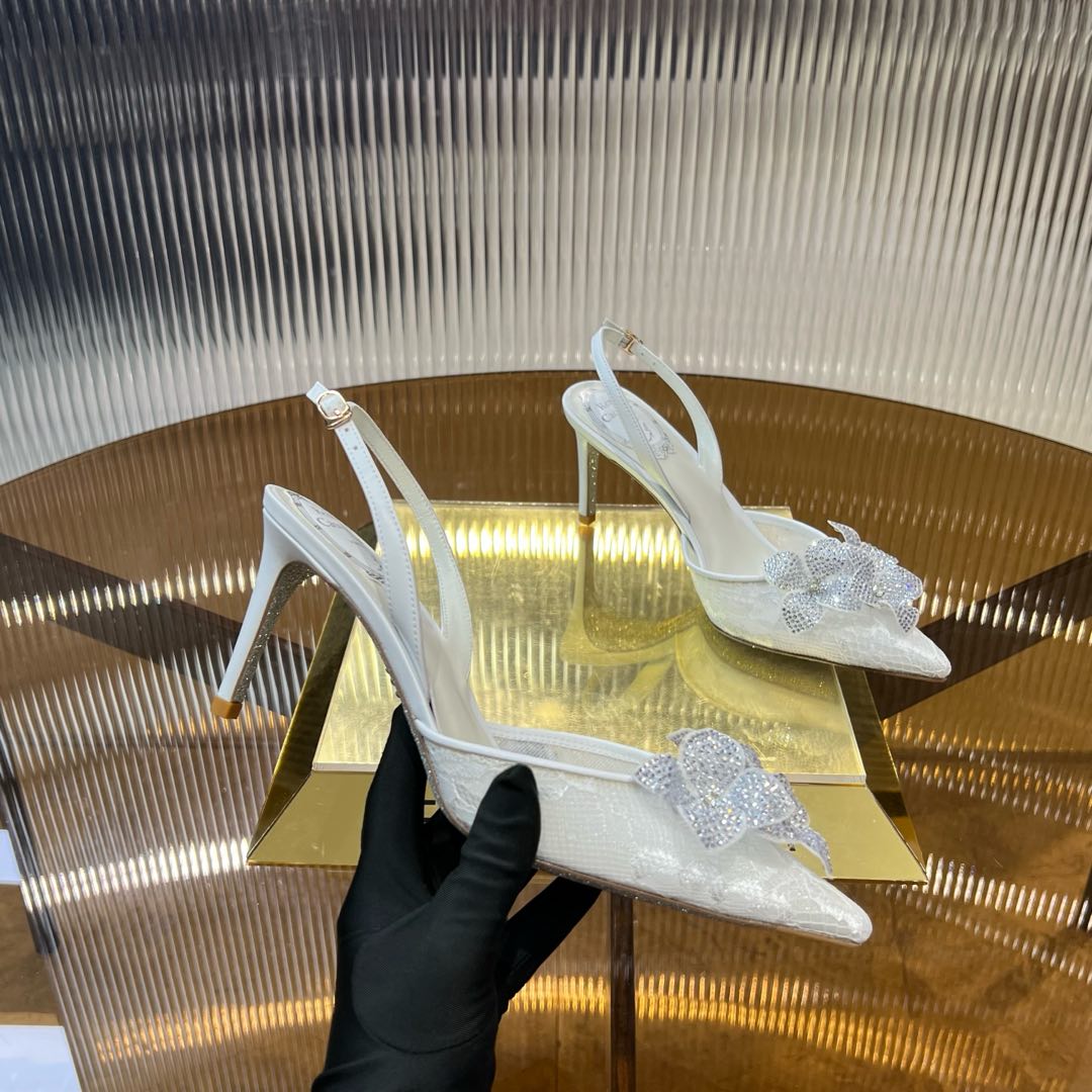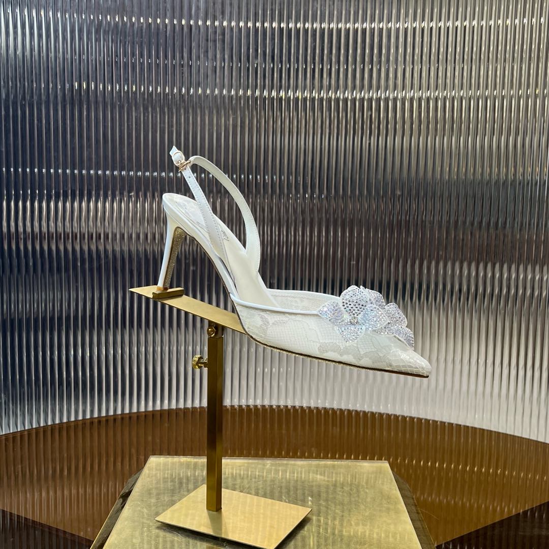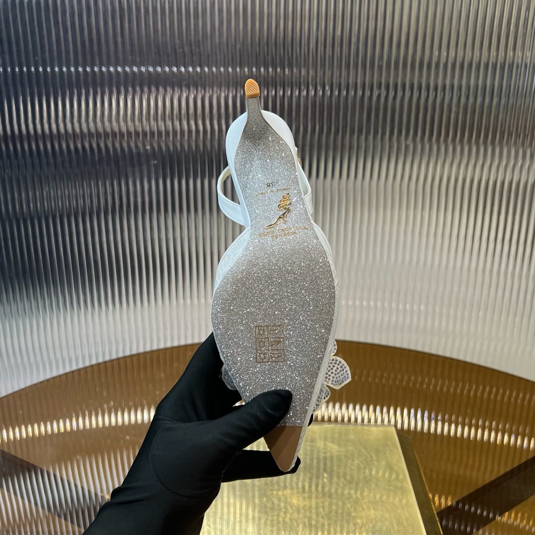 RC 25C Flower-Studded Diamond High-Heeled Sandals White Sheepskin 174905