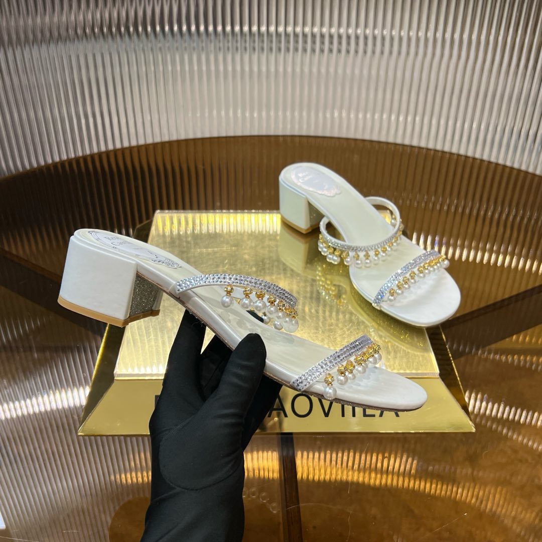 RC Gold Buckle Pearl Crystal Lamp Pendant Sandals 4.5 White Sheepskin 175008