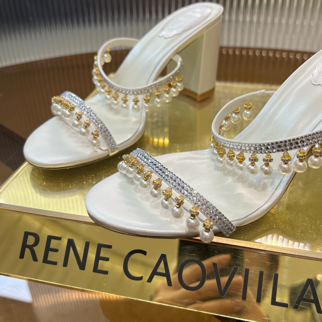RC Gold Buckle Pearl Crystal Lamp Pendant Sandals 7.5 White Sheepskin 175000